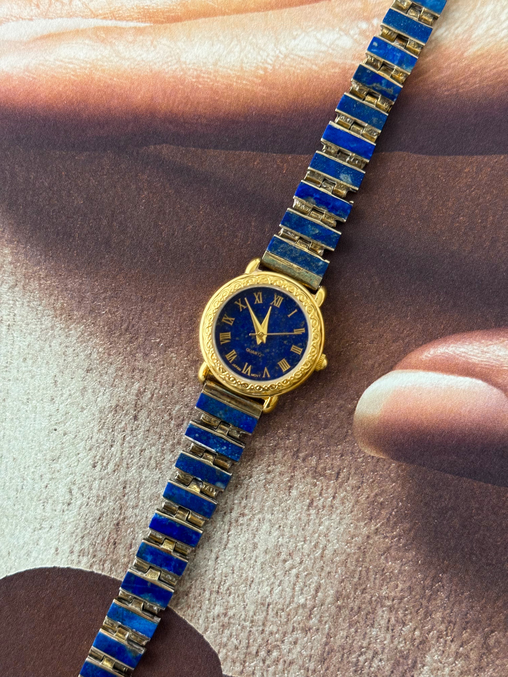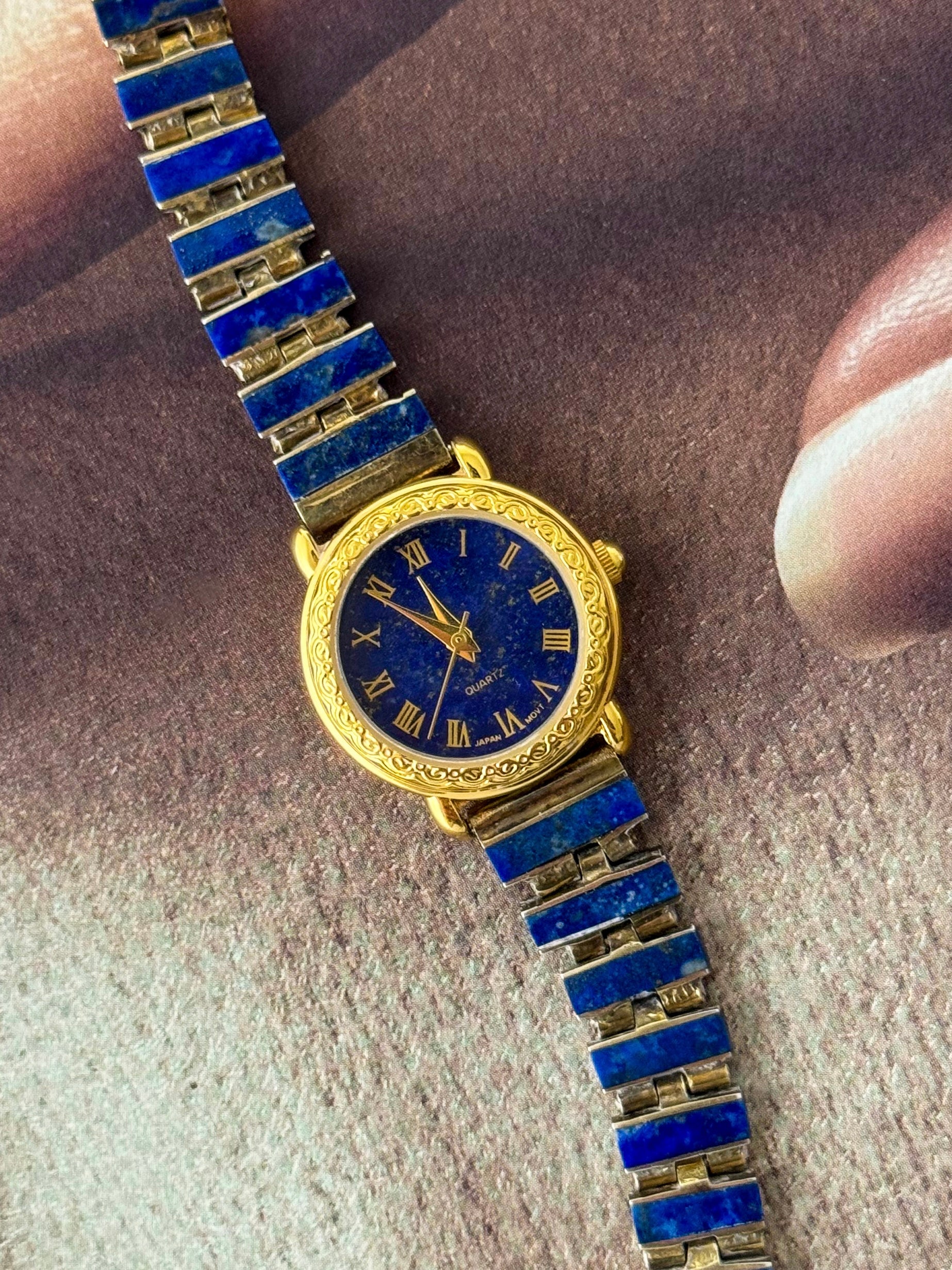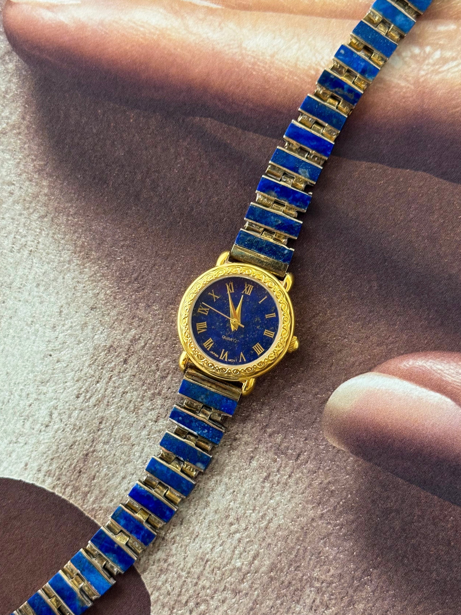 Vintage Gem Time Gold Watch With Genuine Lapis Lazuli Stone Band
