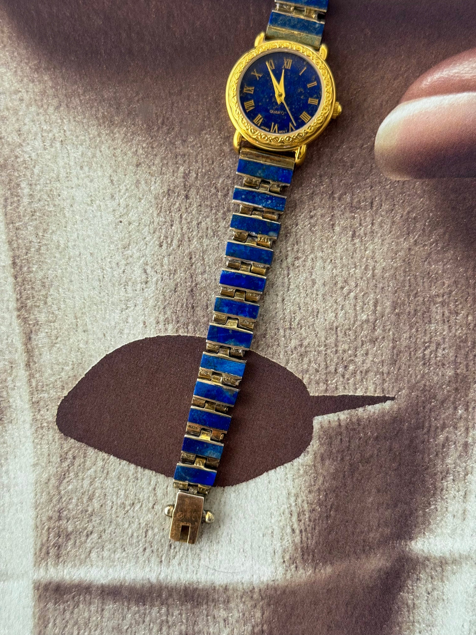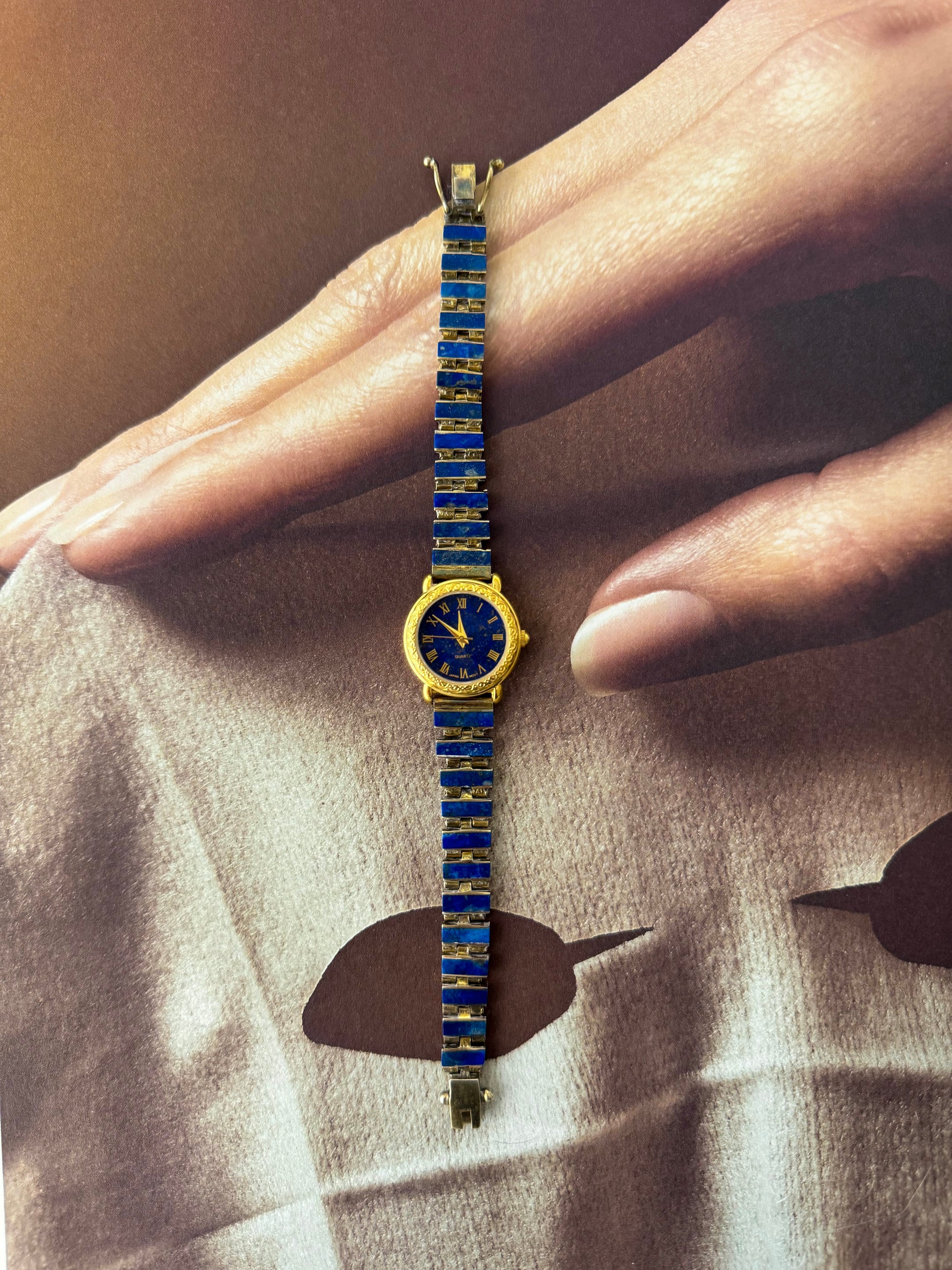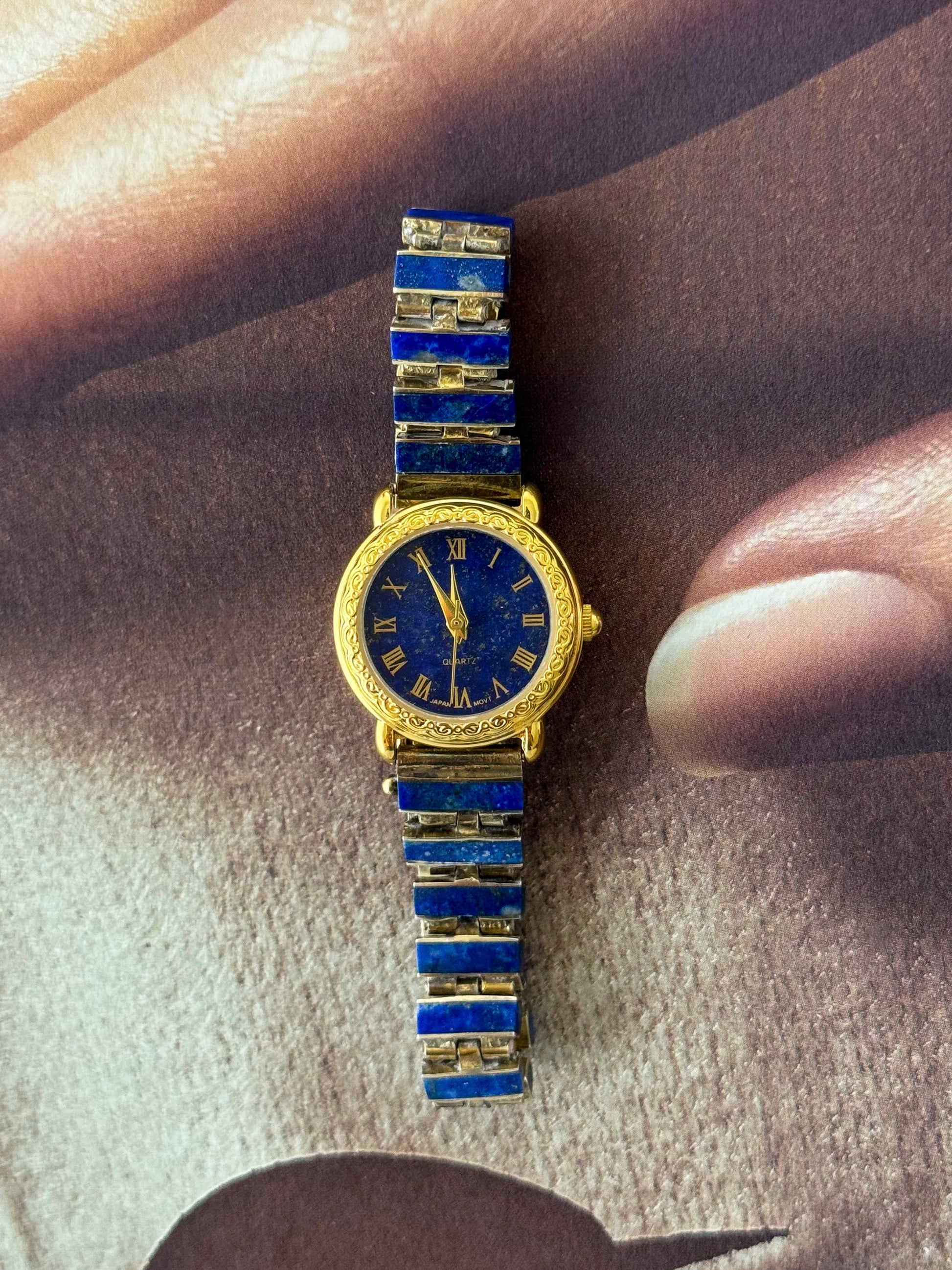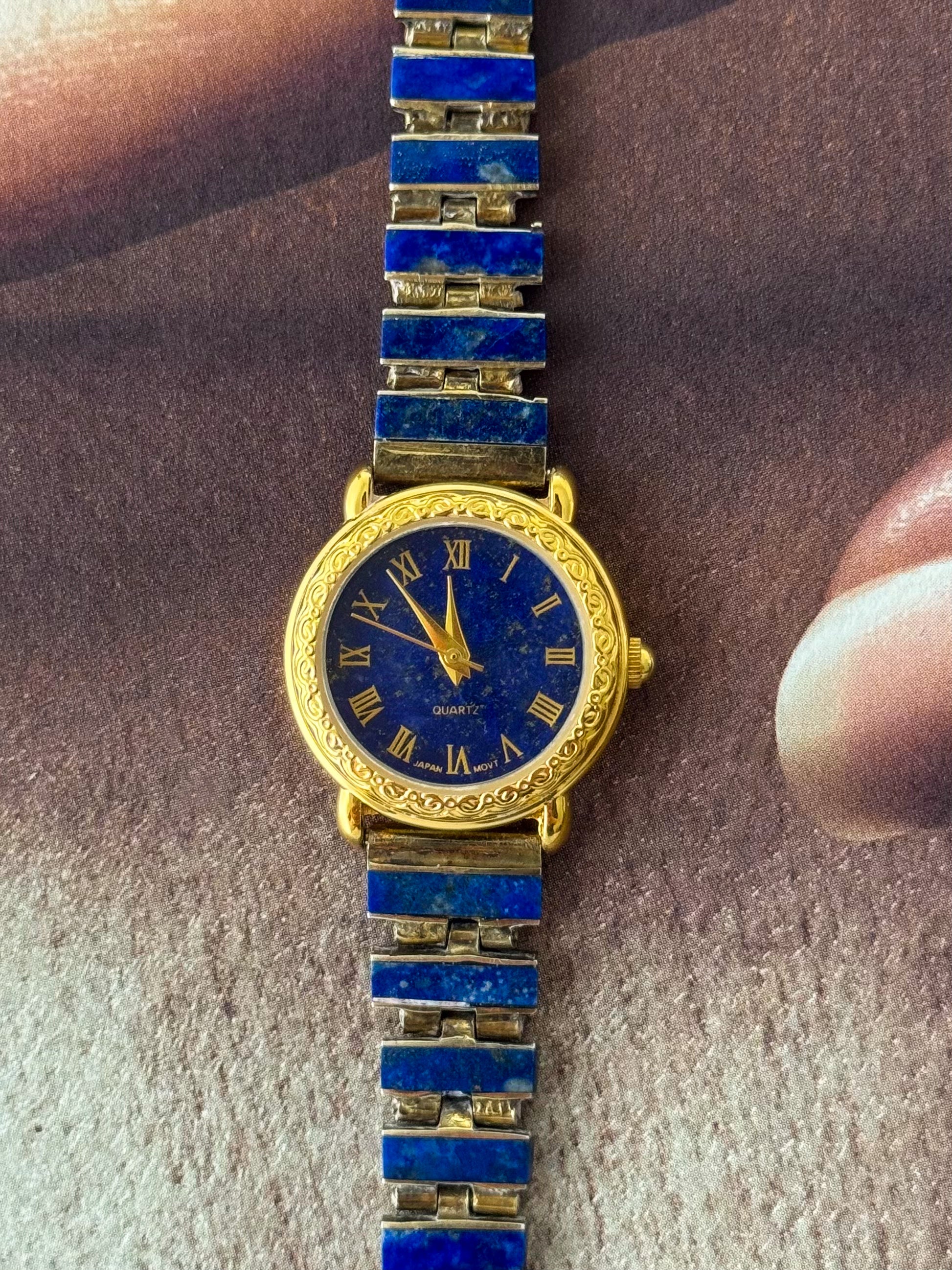 Vintage Gem Time Gold Watch With Genuine Lapis Lazuli Stone Band