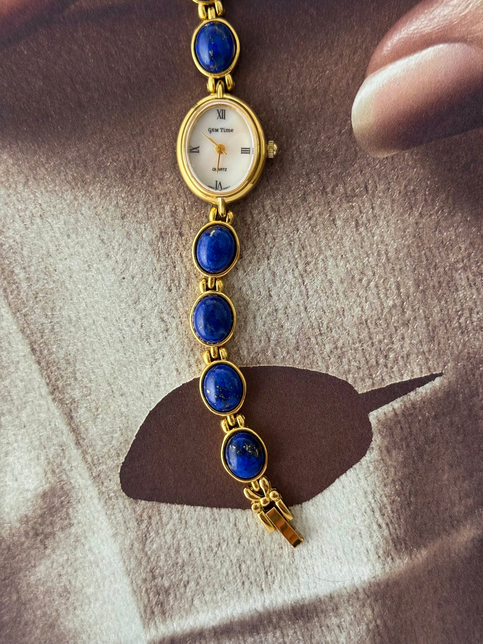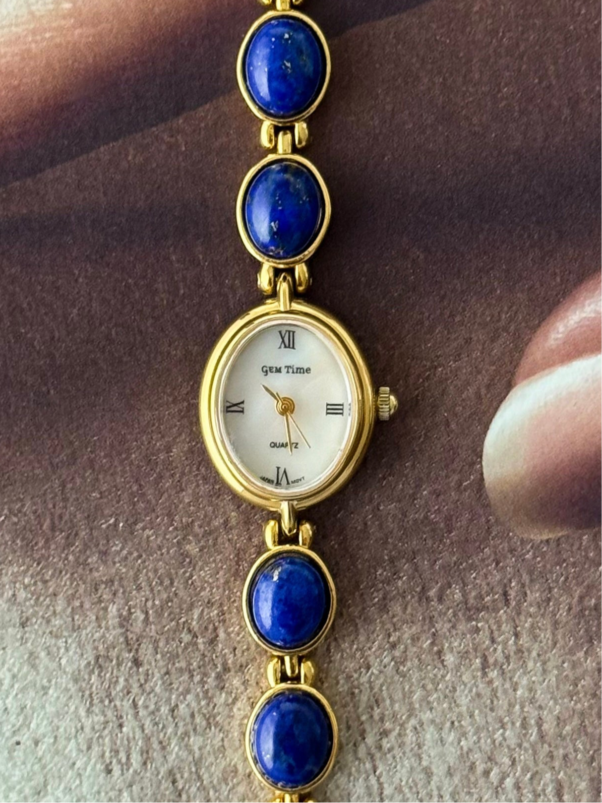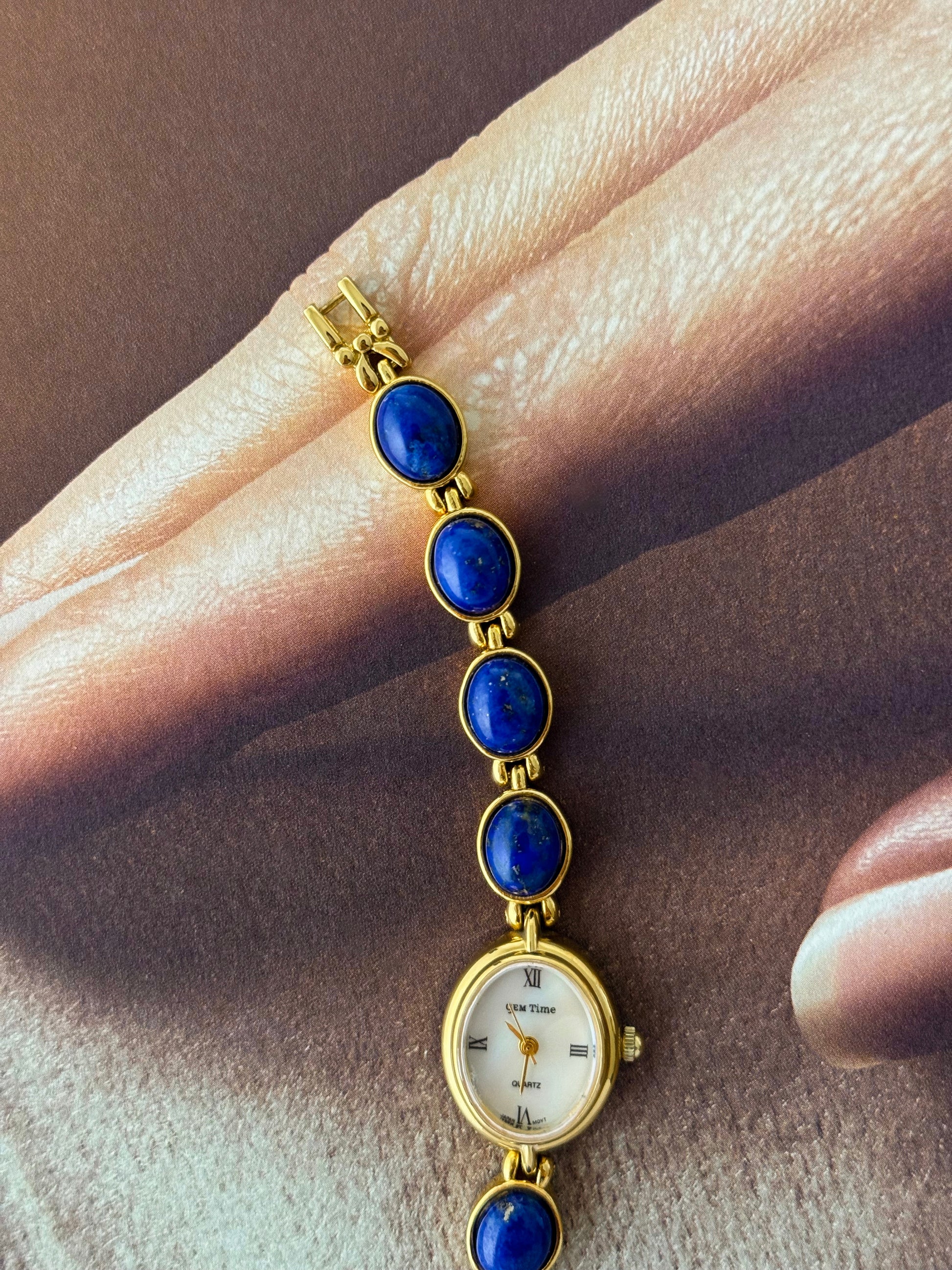 Vintage Gem Time Gold Watch With Genuine Lapis Lazuli Stone Band