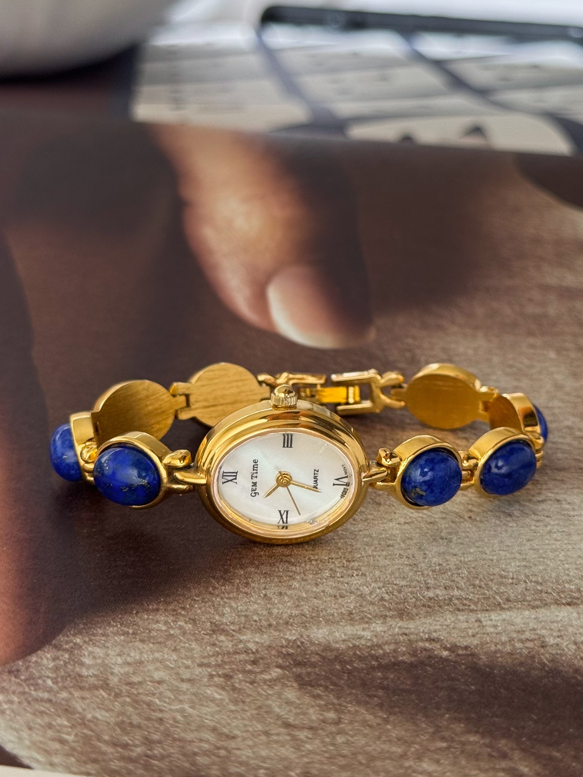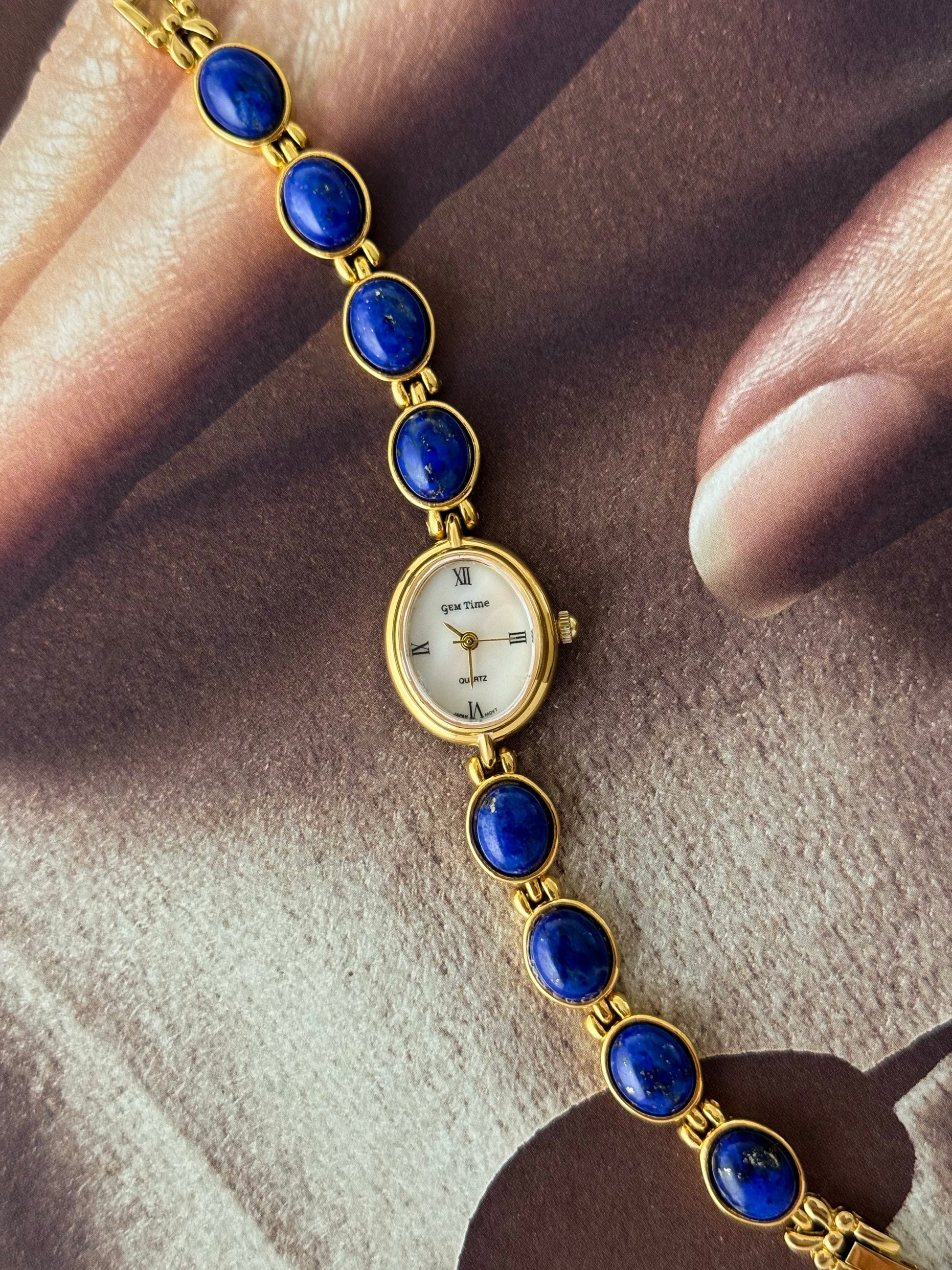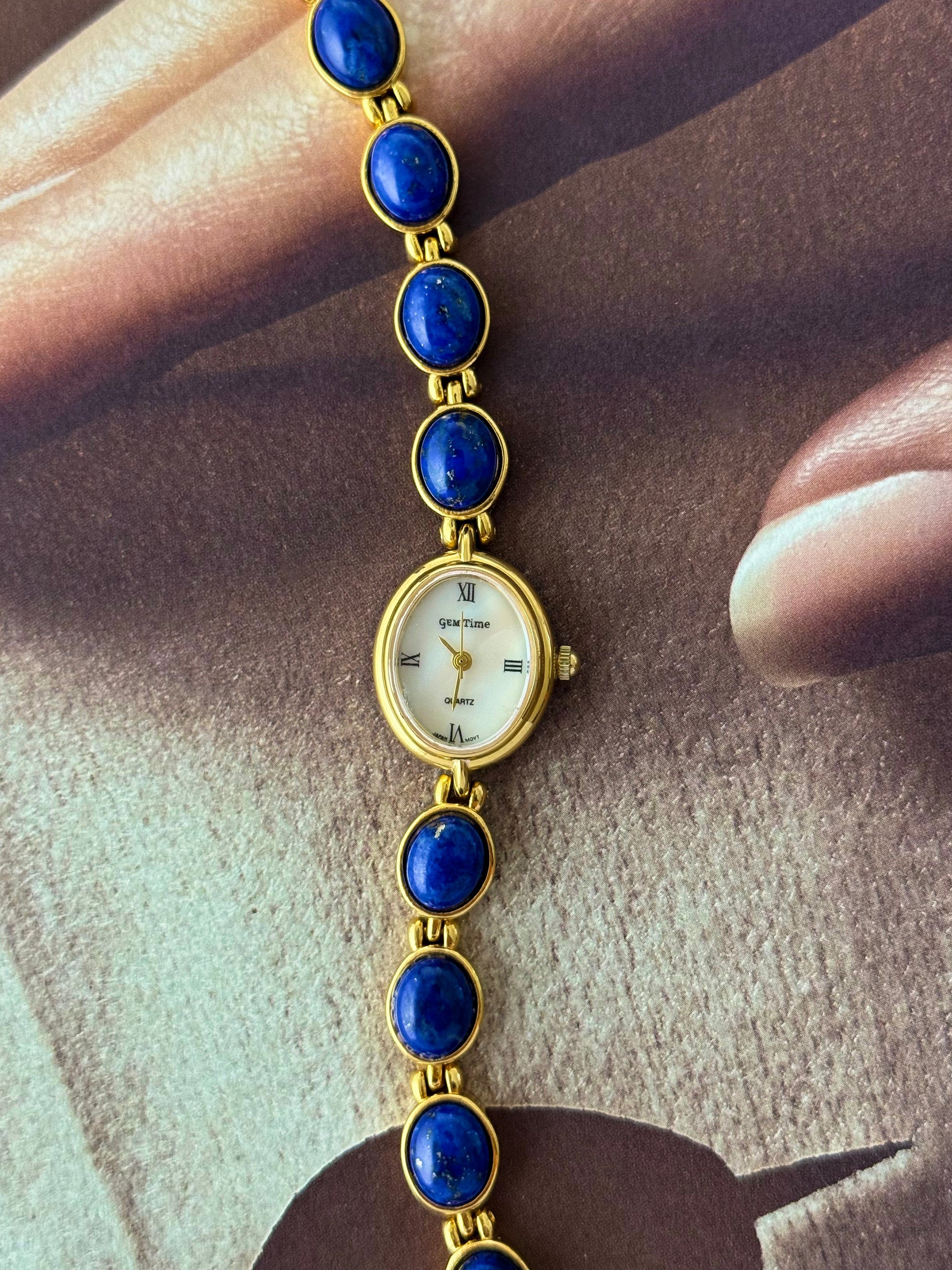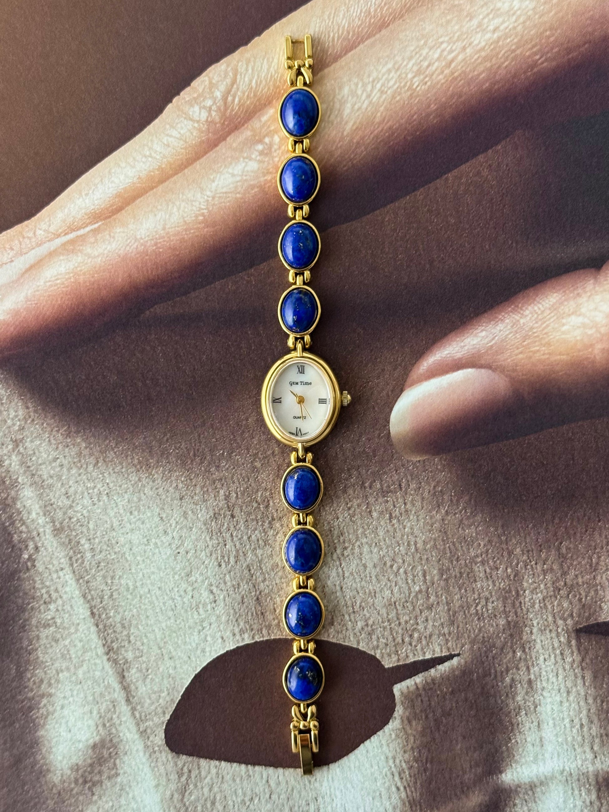 Vintage Gem Time Gold Watch With Genuine Lapis Lazuli Stone Band