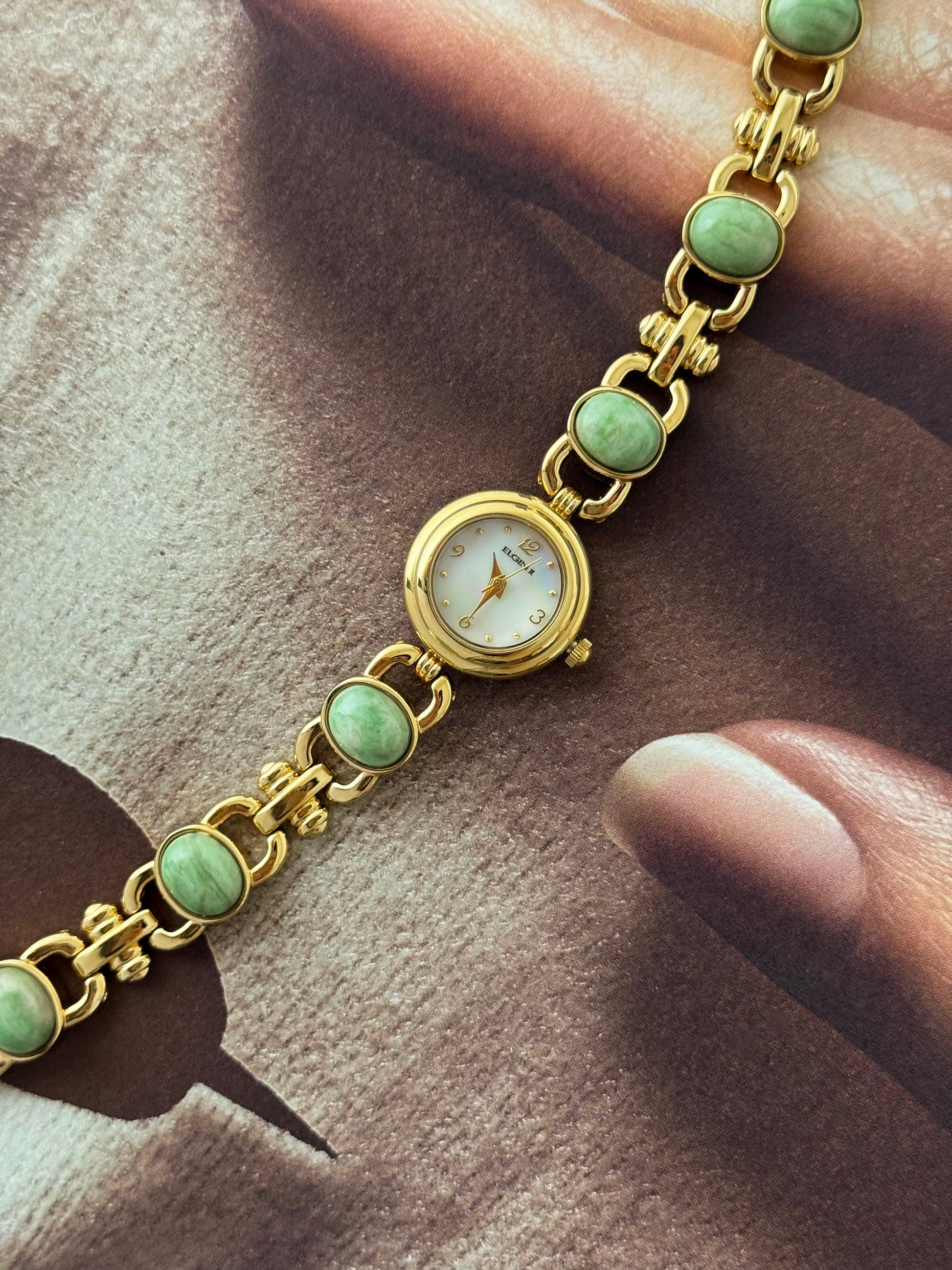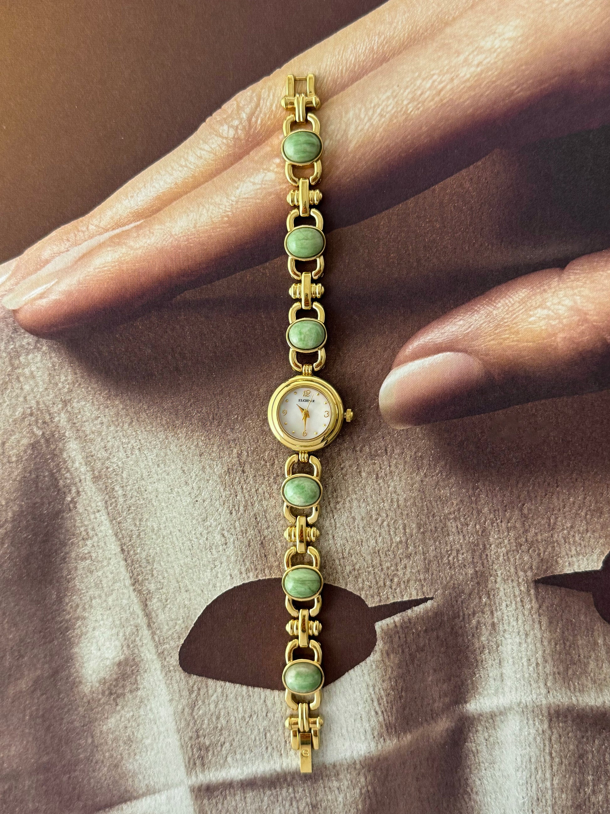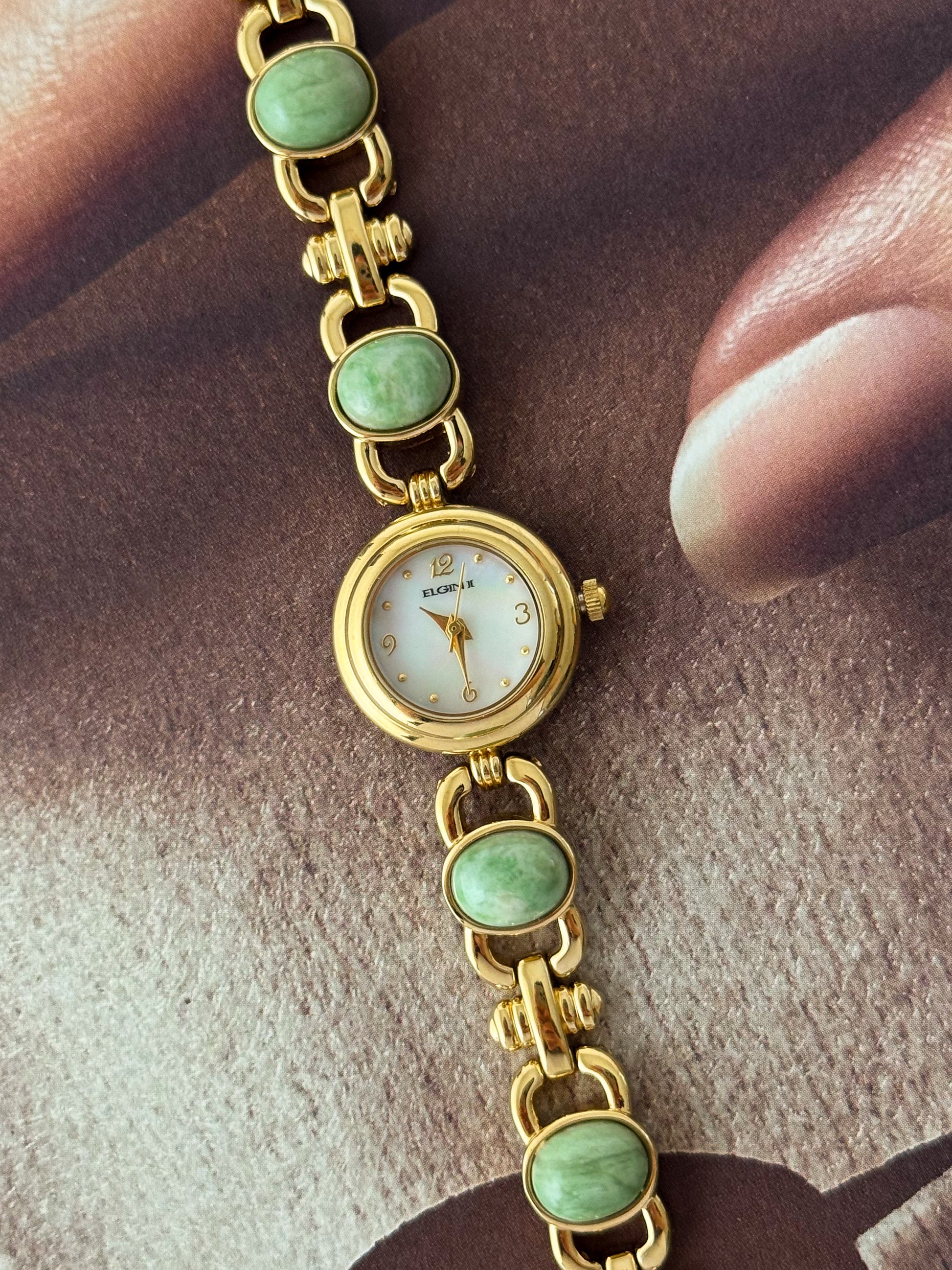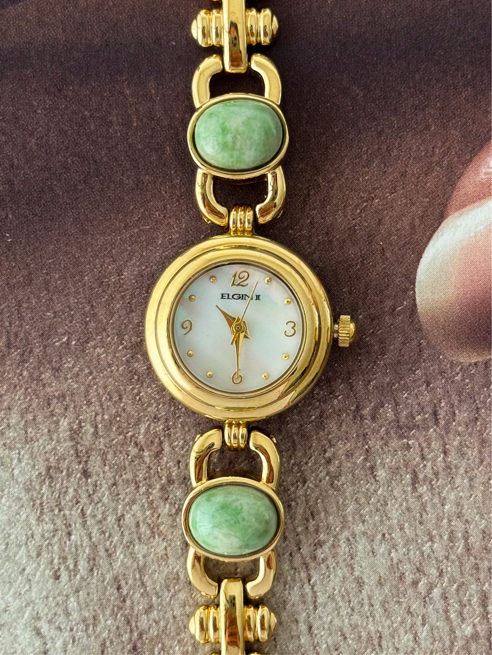 Vintage Elgin Gold Watch With Natural Jade Stone Band