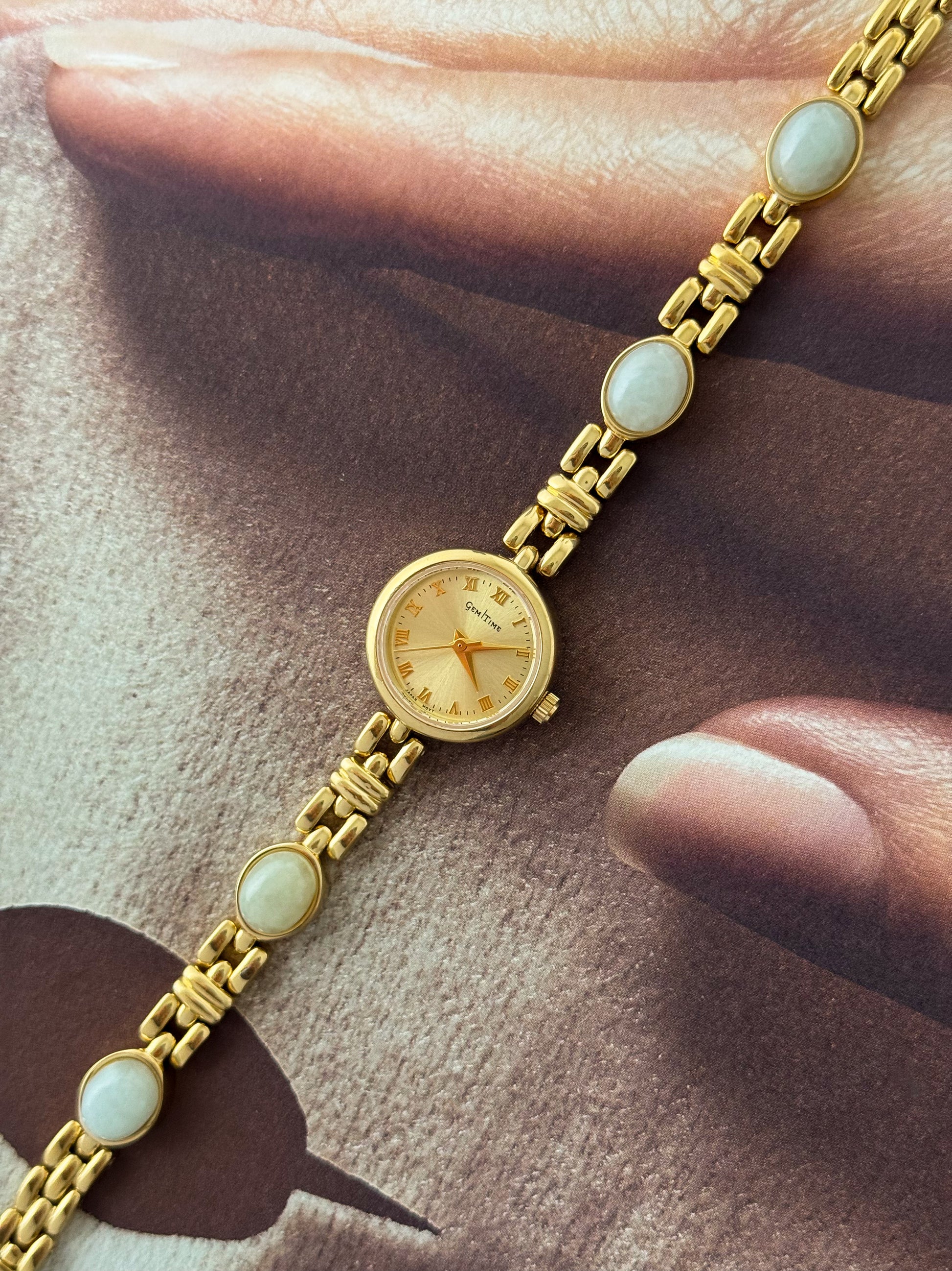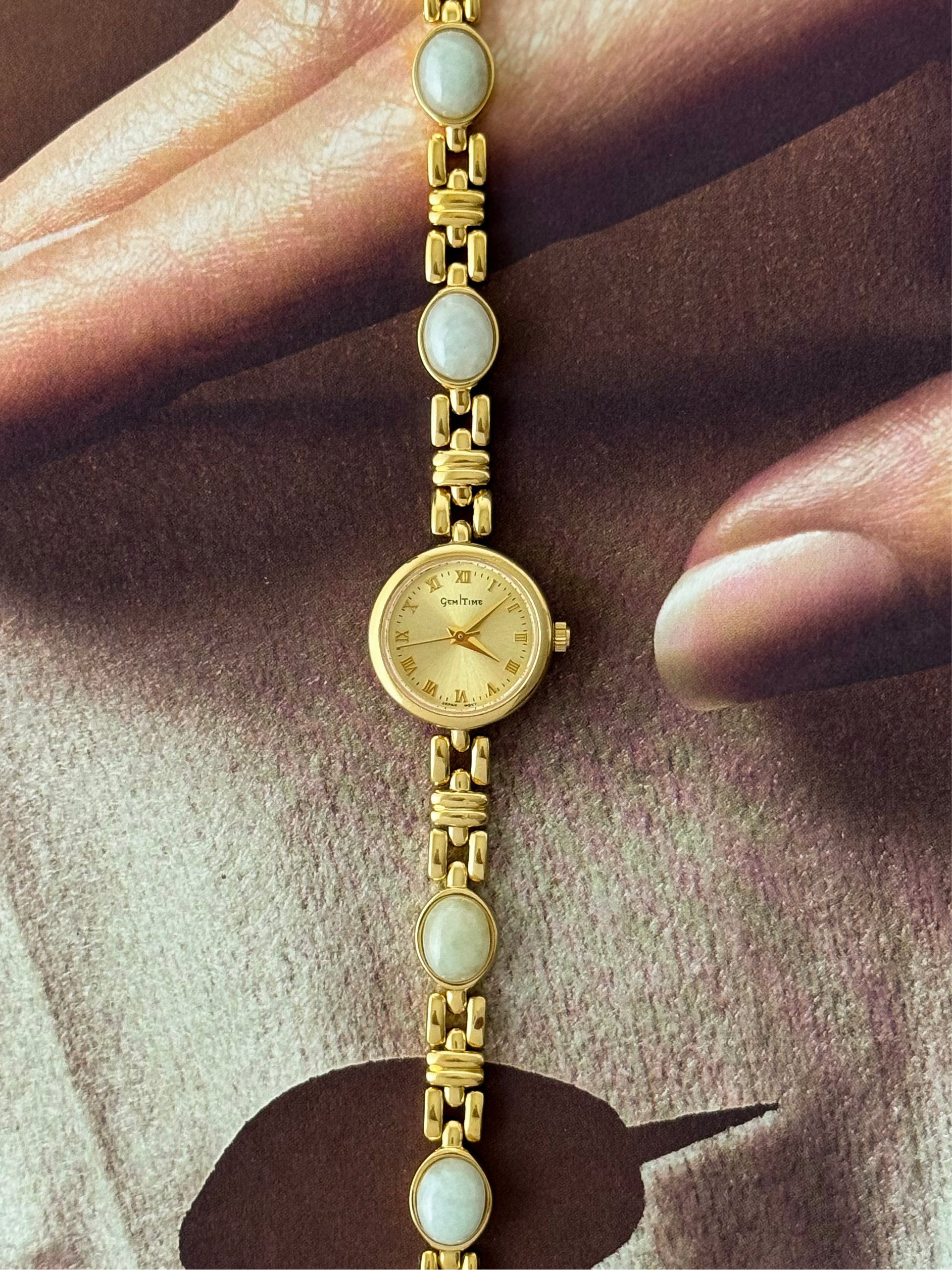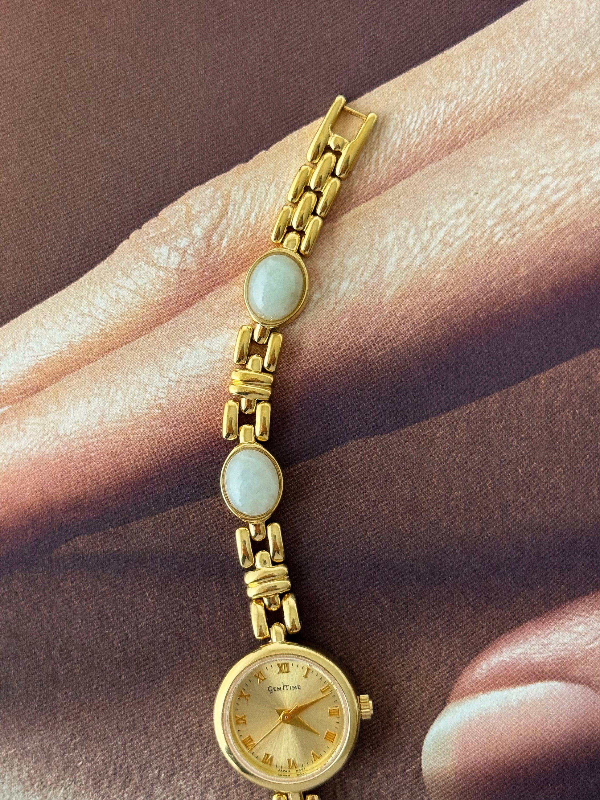 Vintage Gem Time Gold Watch With Natural Jade Stone Band