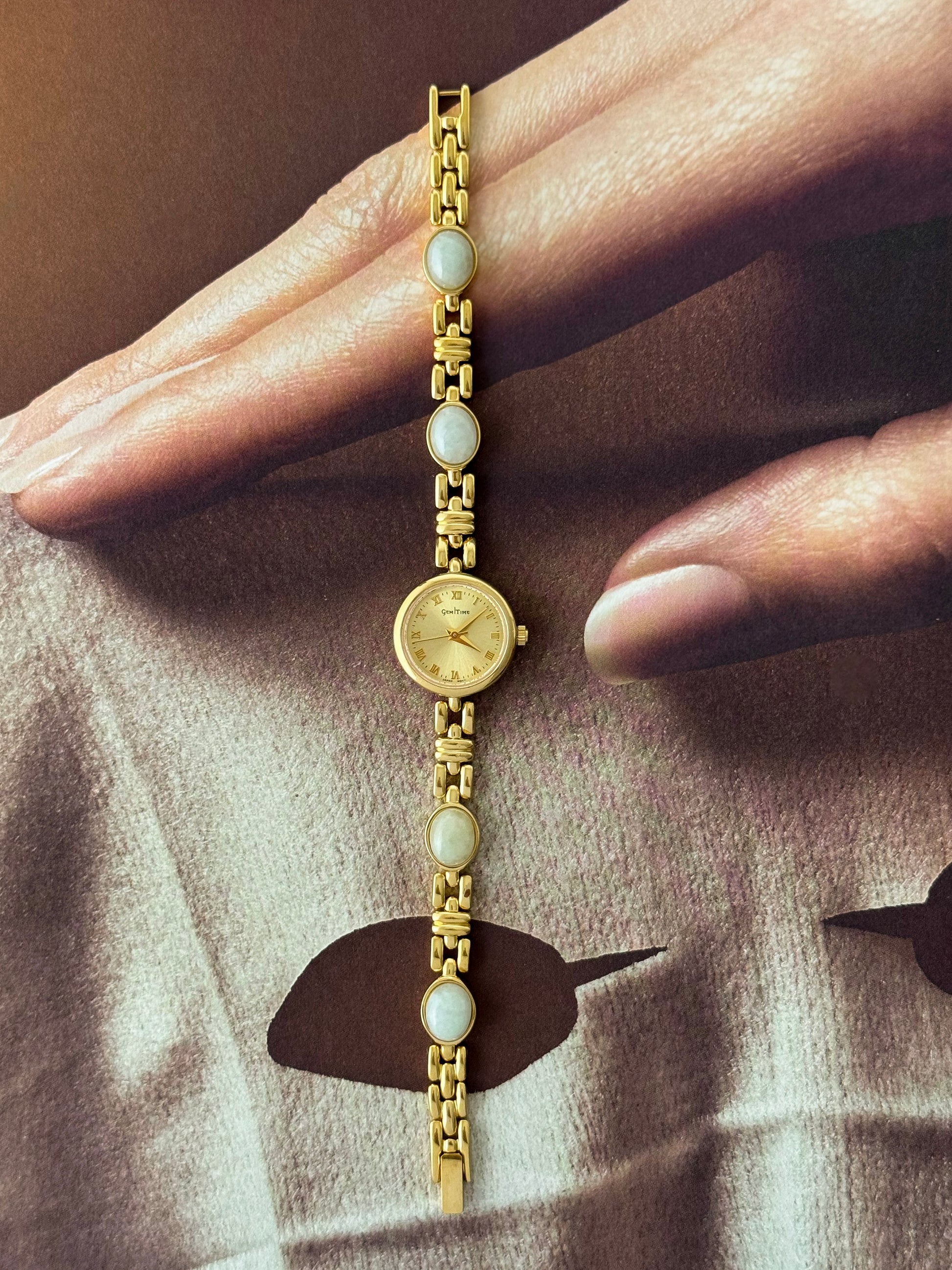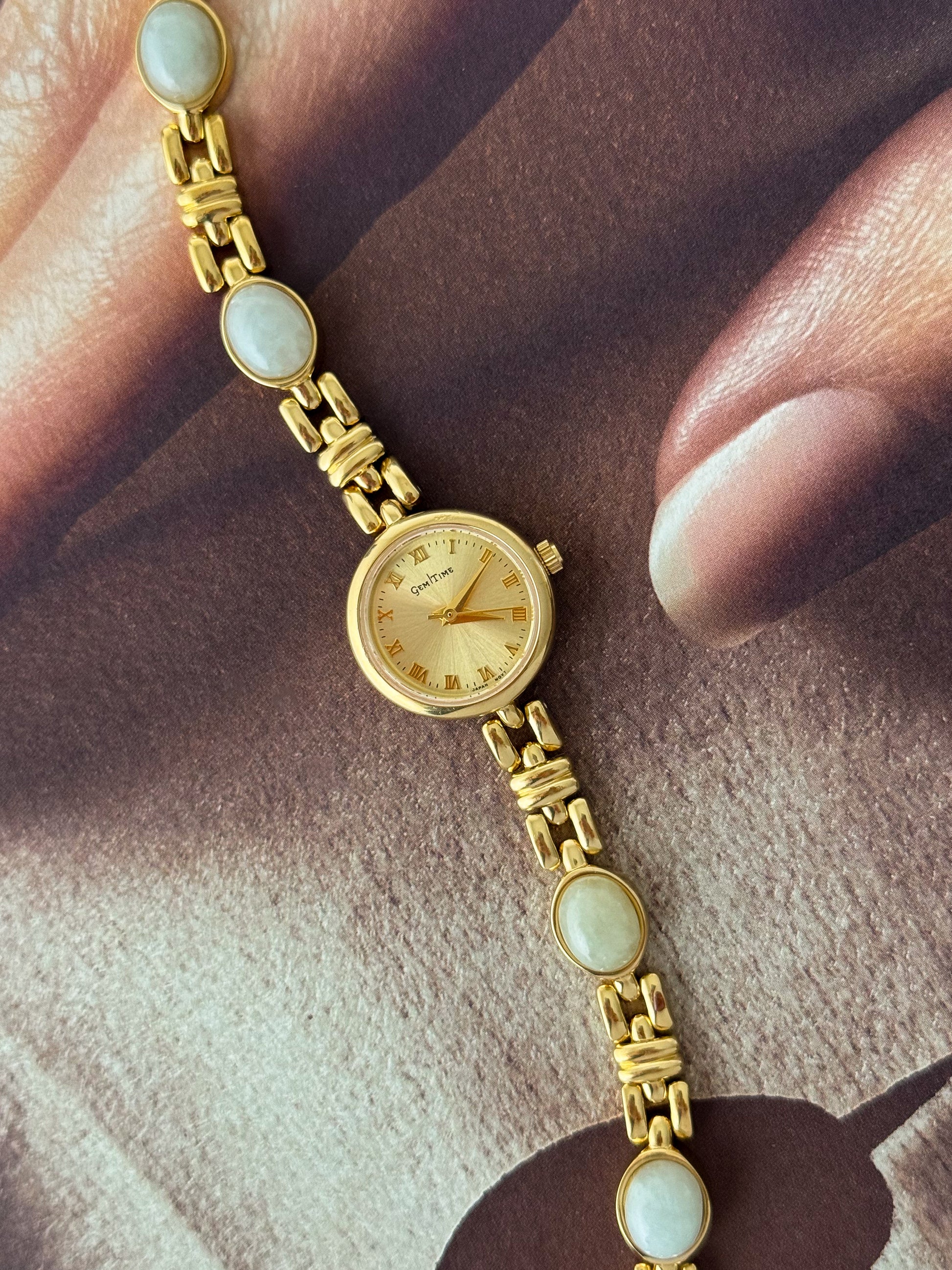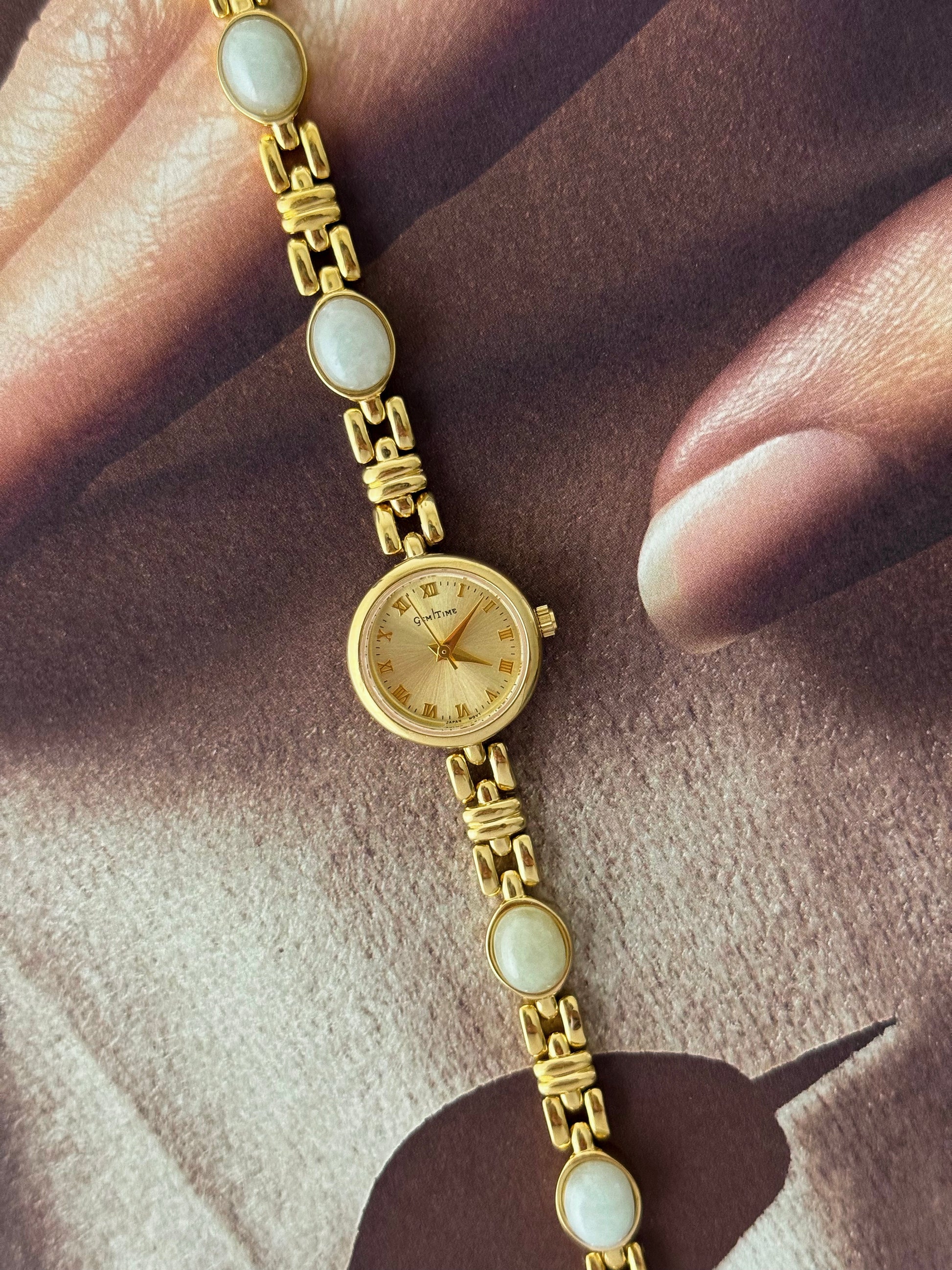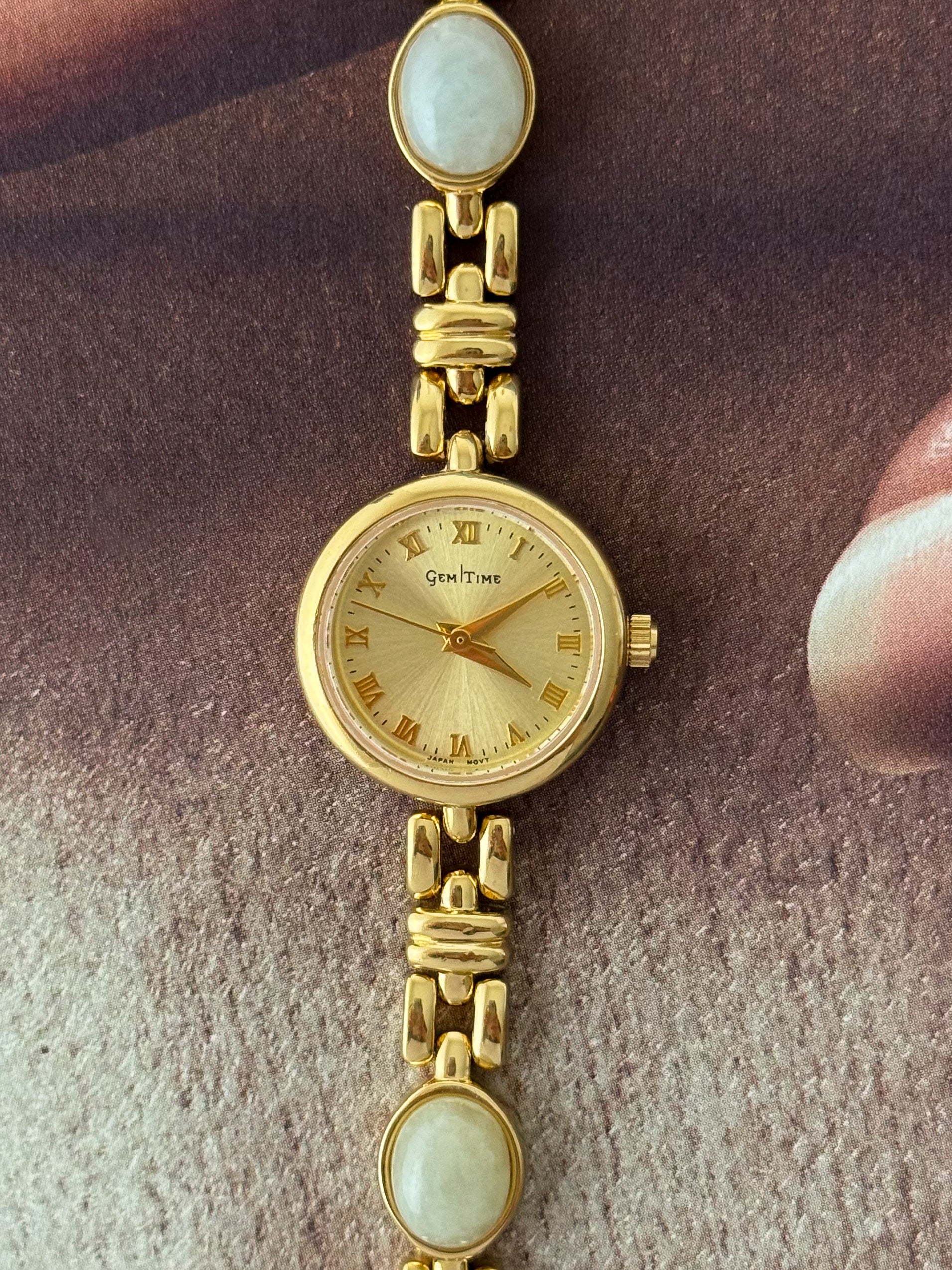 Vintage Gem Time Gold Watch With Natural Jade Stone Band