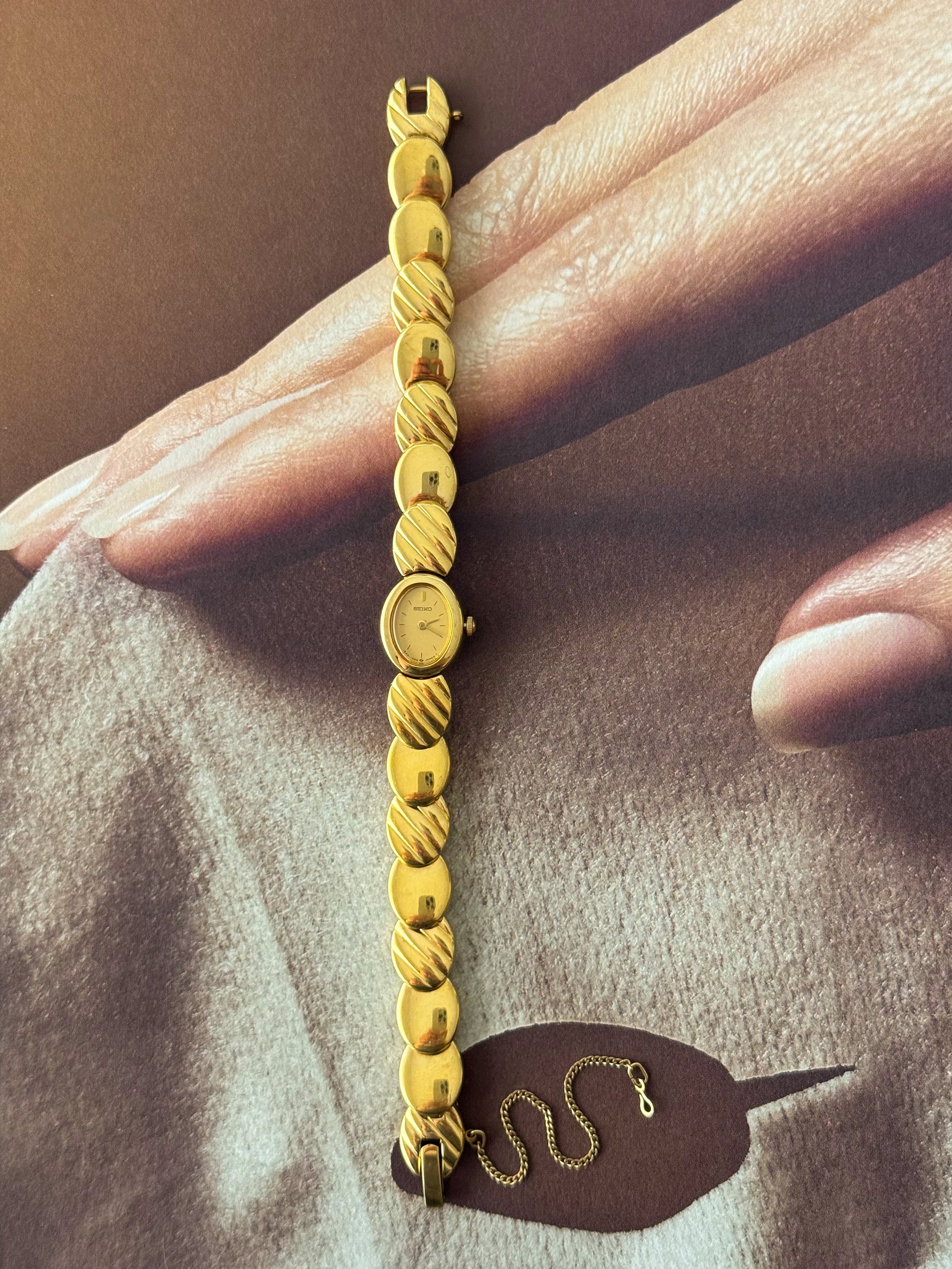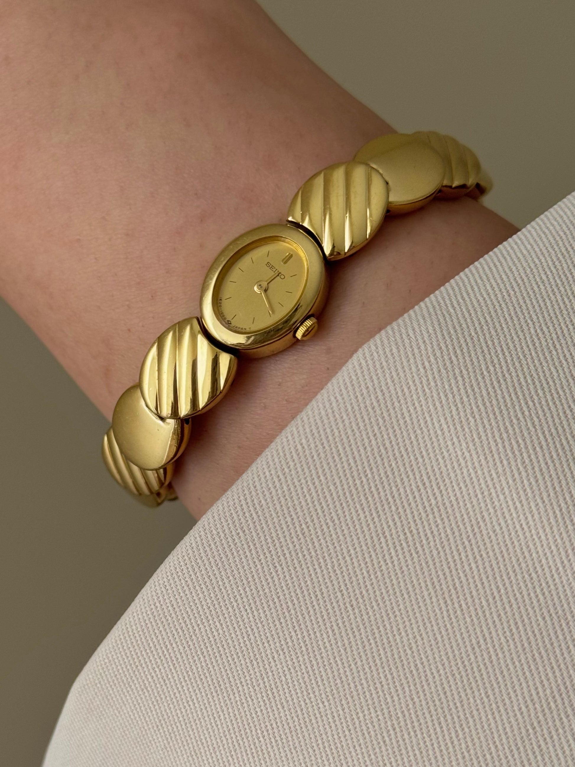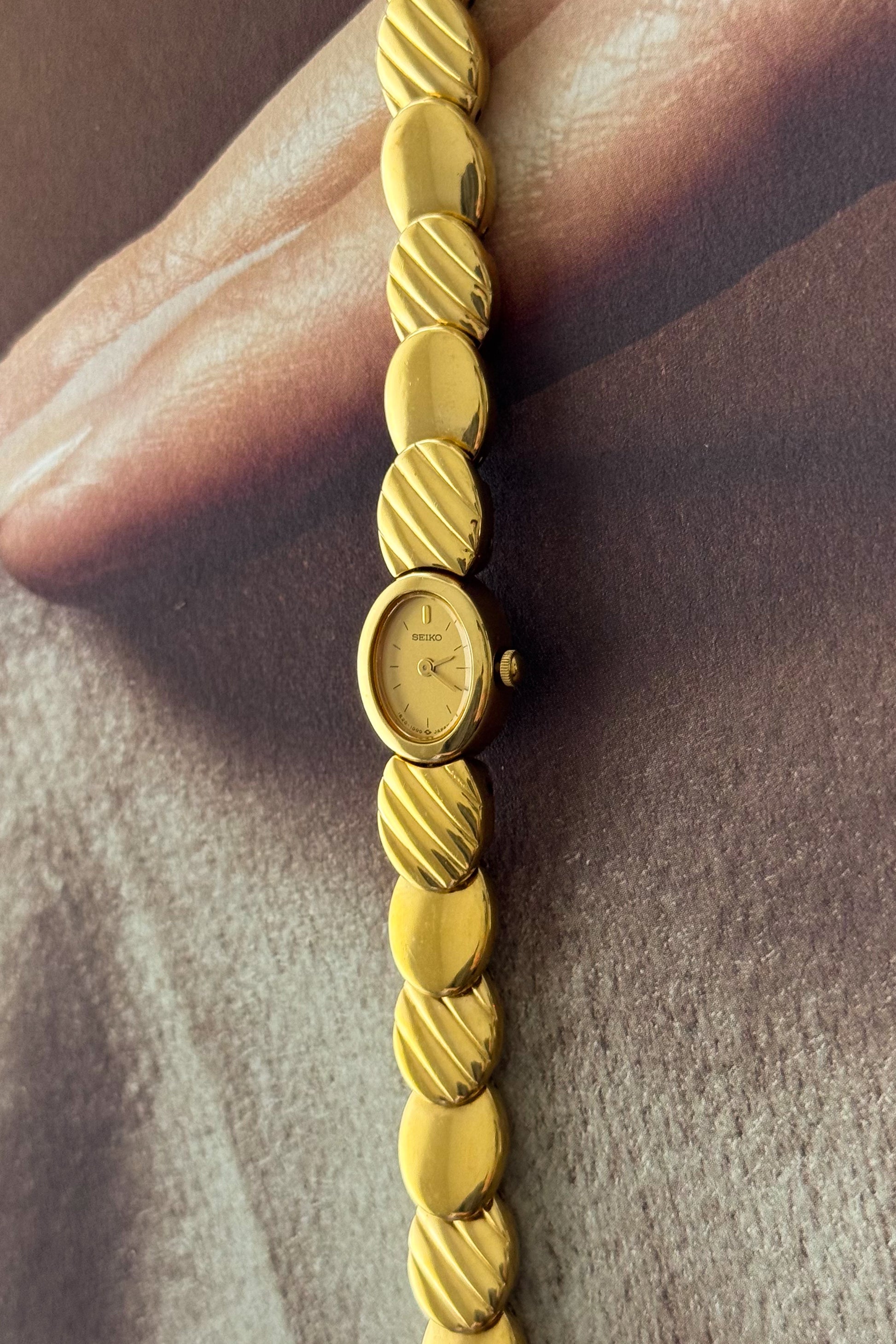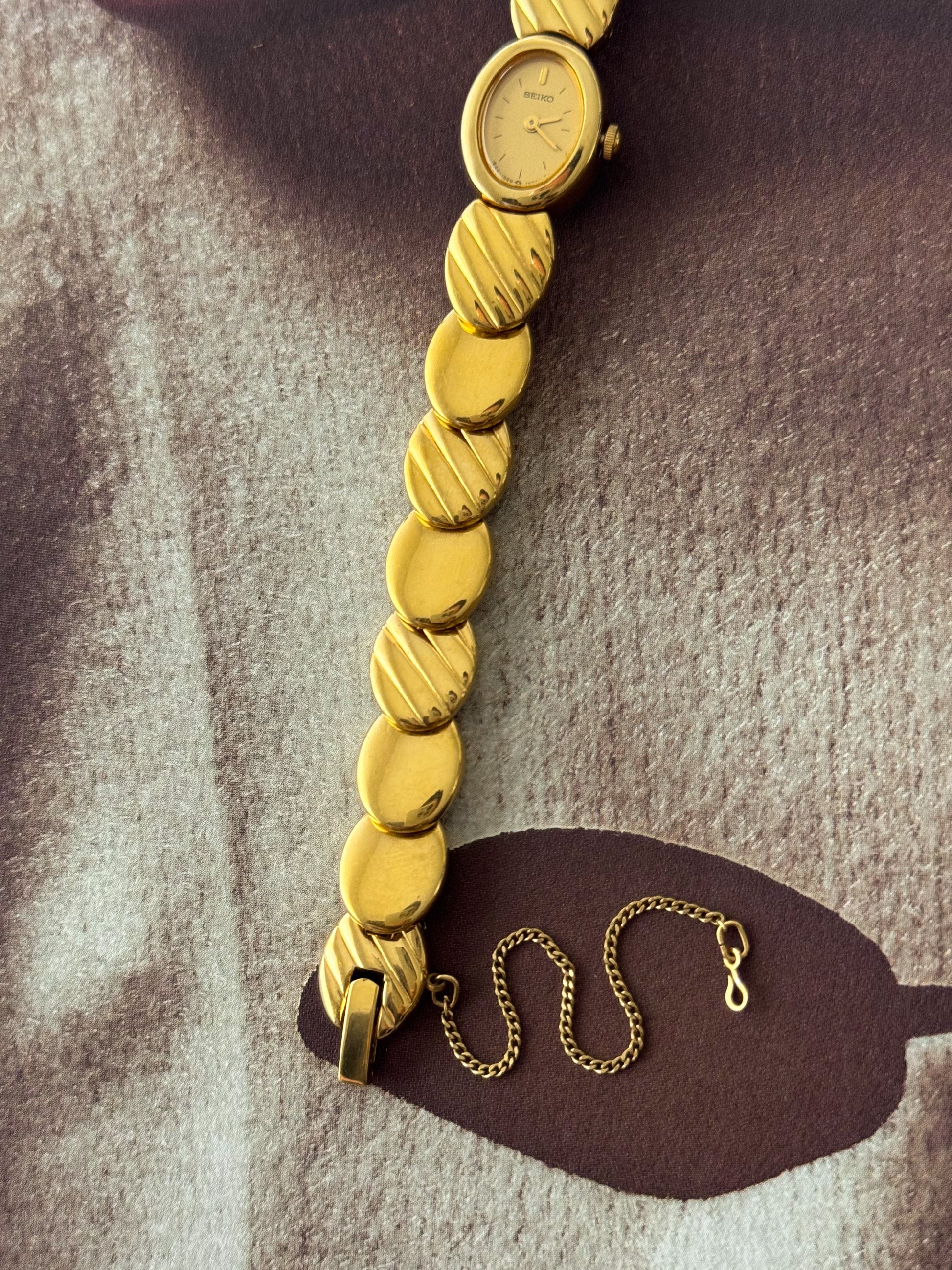 Dainty 1990s Gold Plated Seiko Watch with Petite Oval Dial