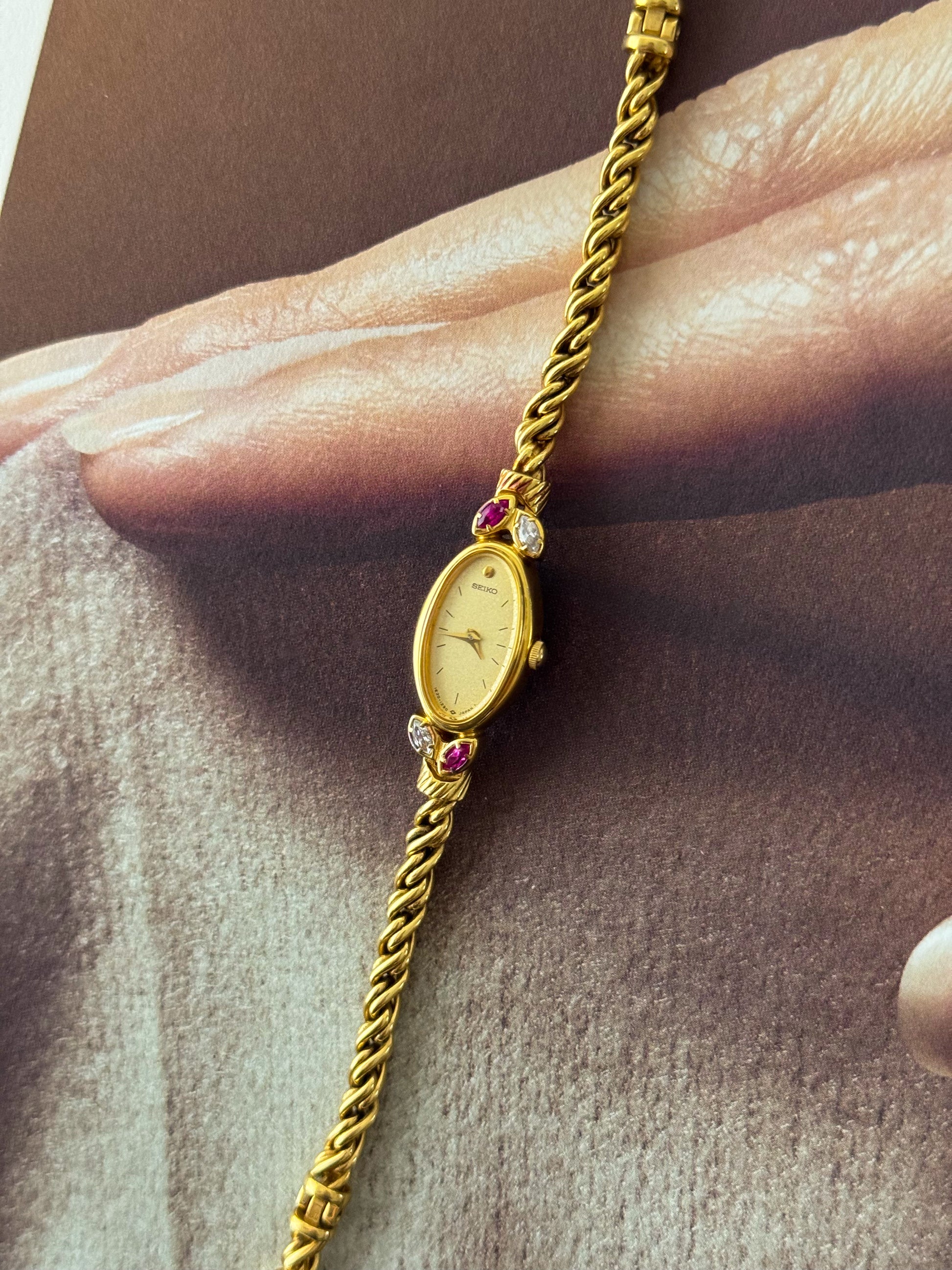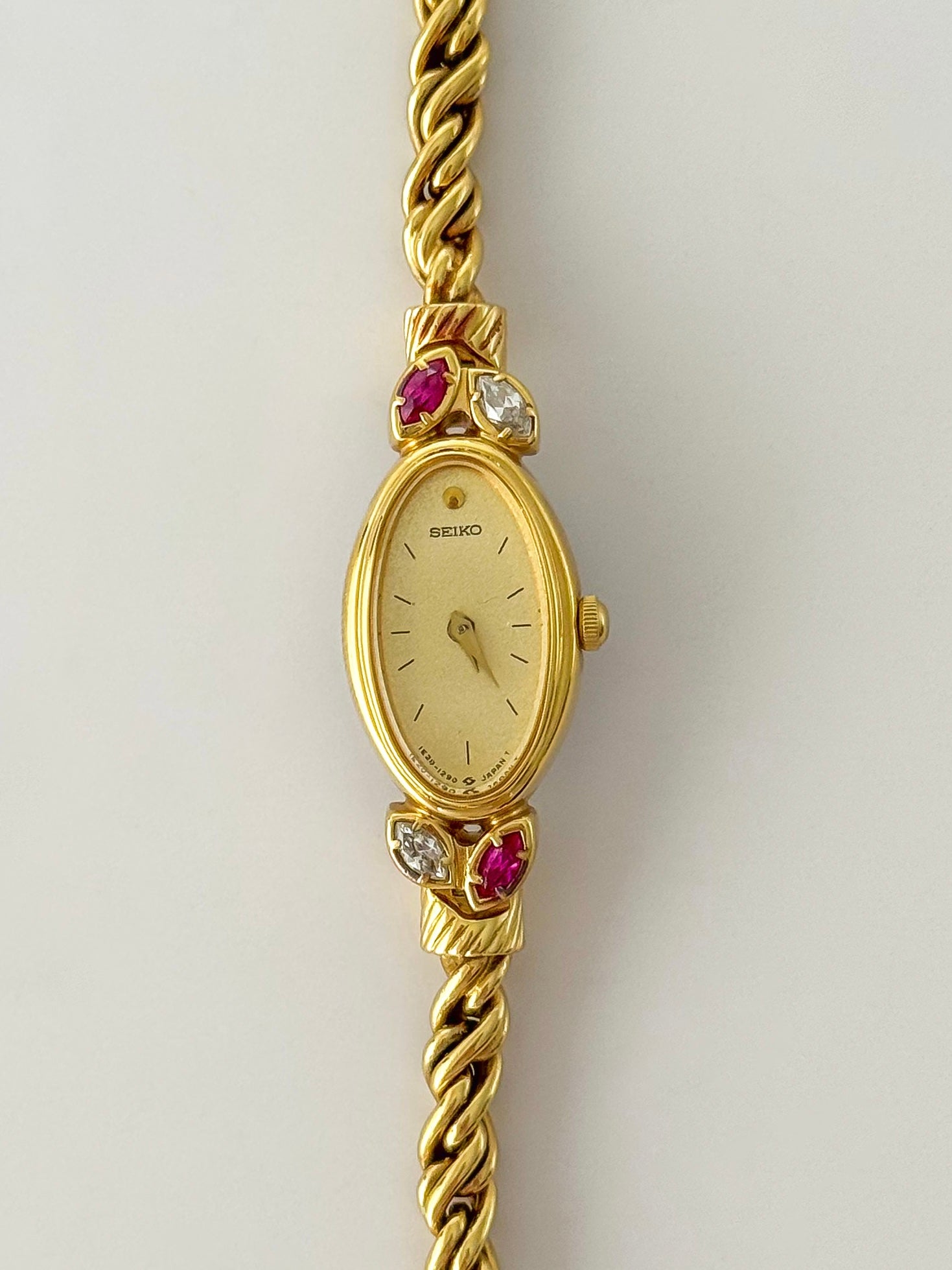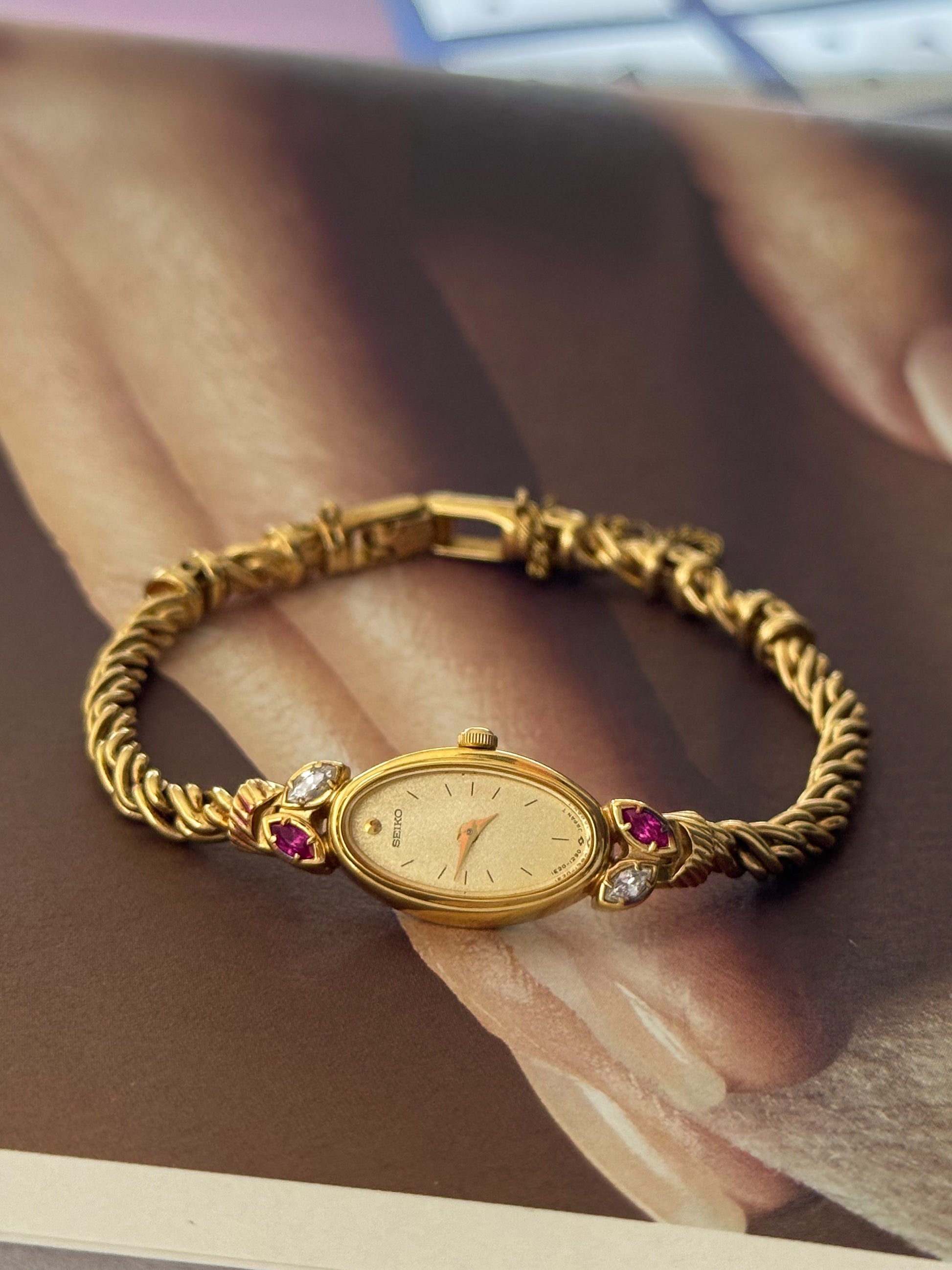 Extremely RARE 1990s Gold Plated Seiko Watch With Genuine Rubies And Rope Band