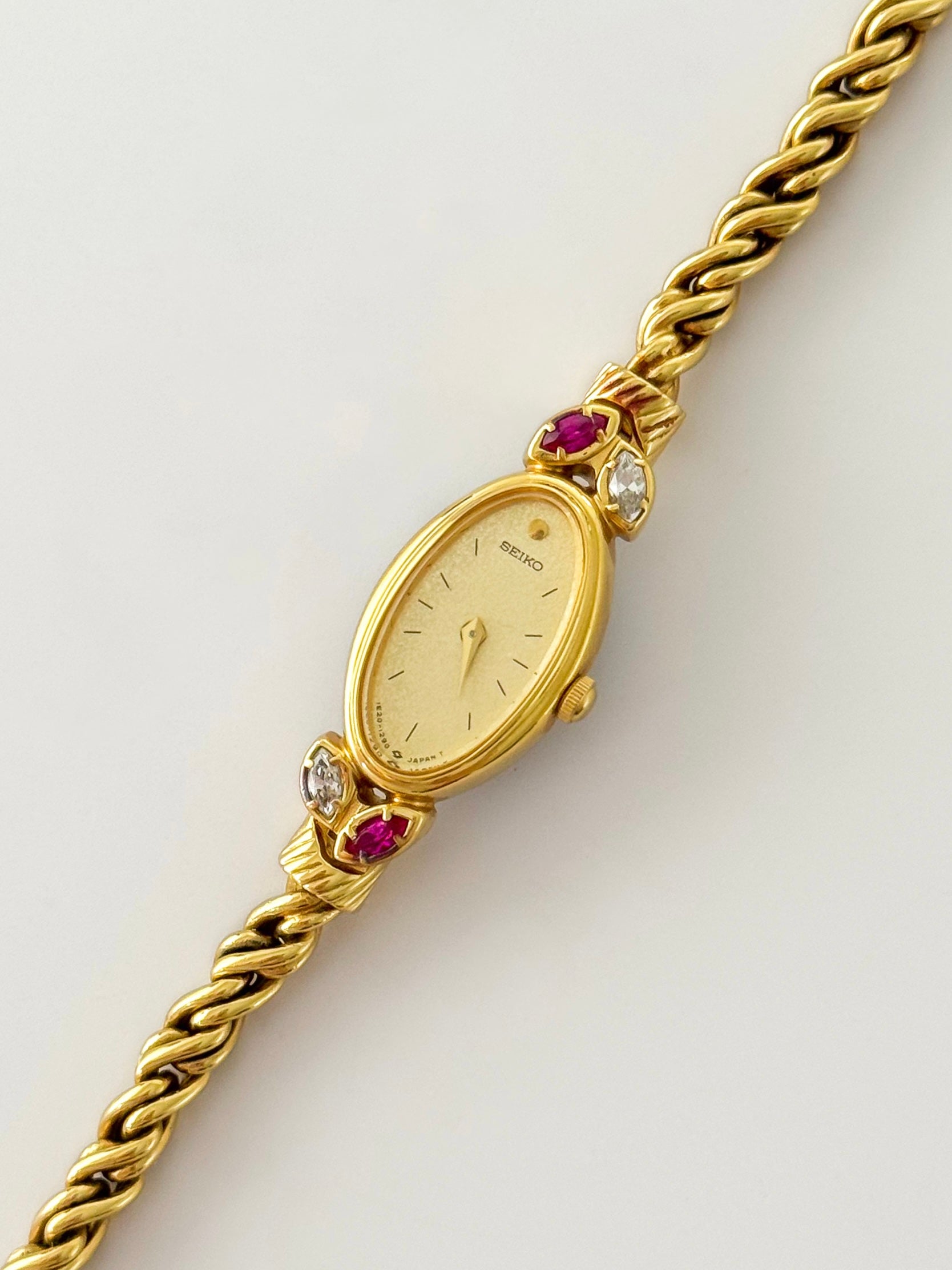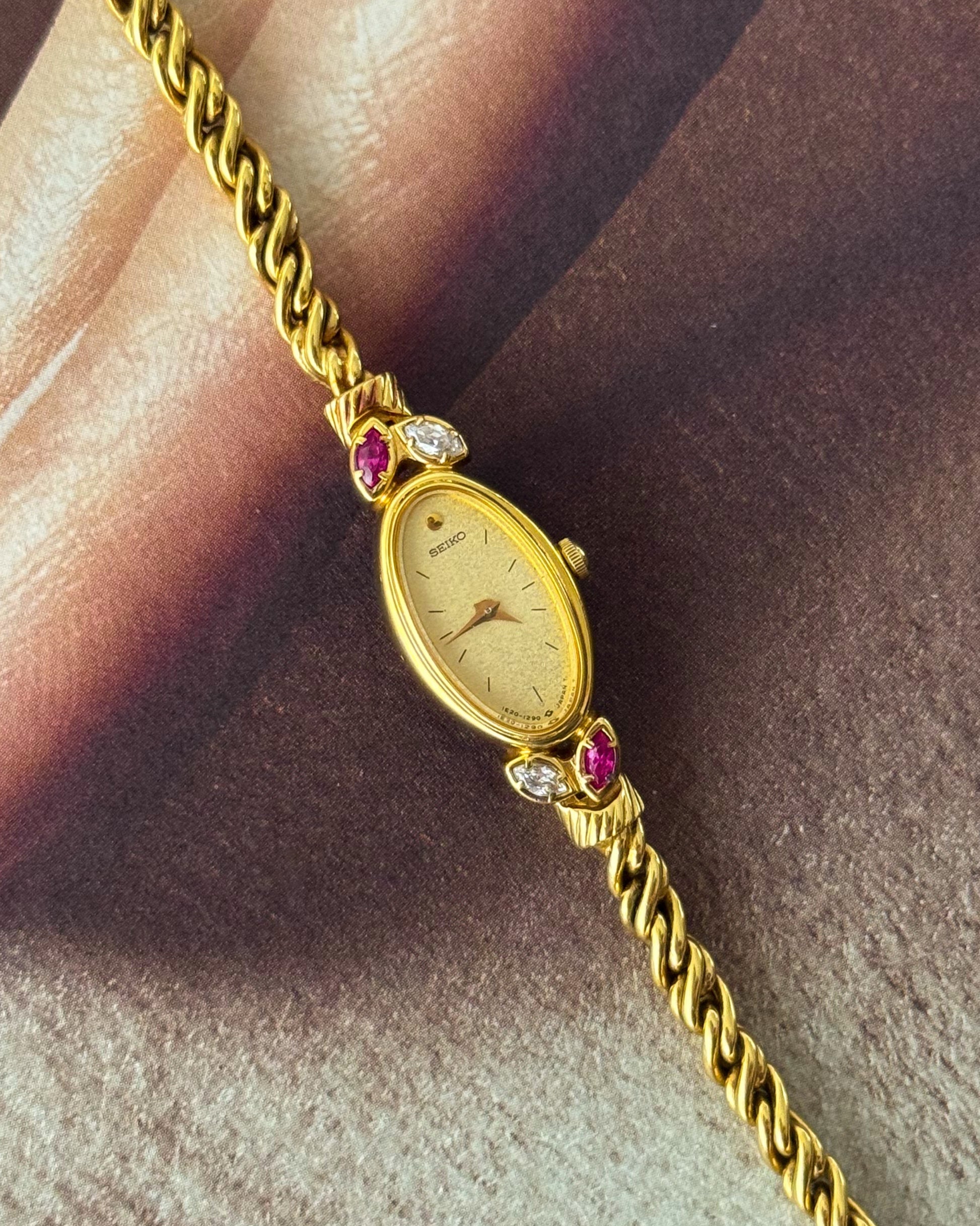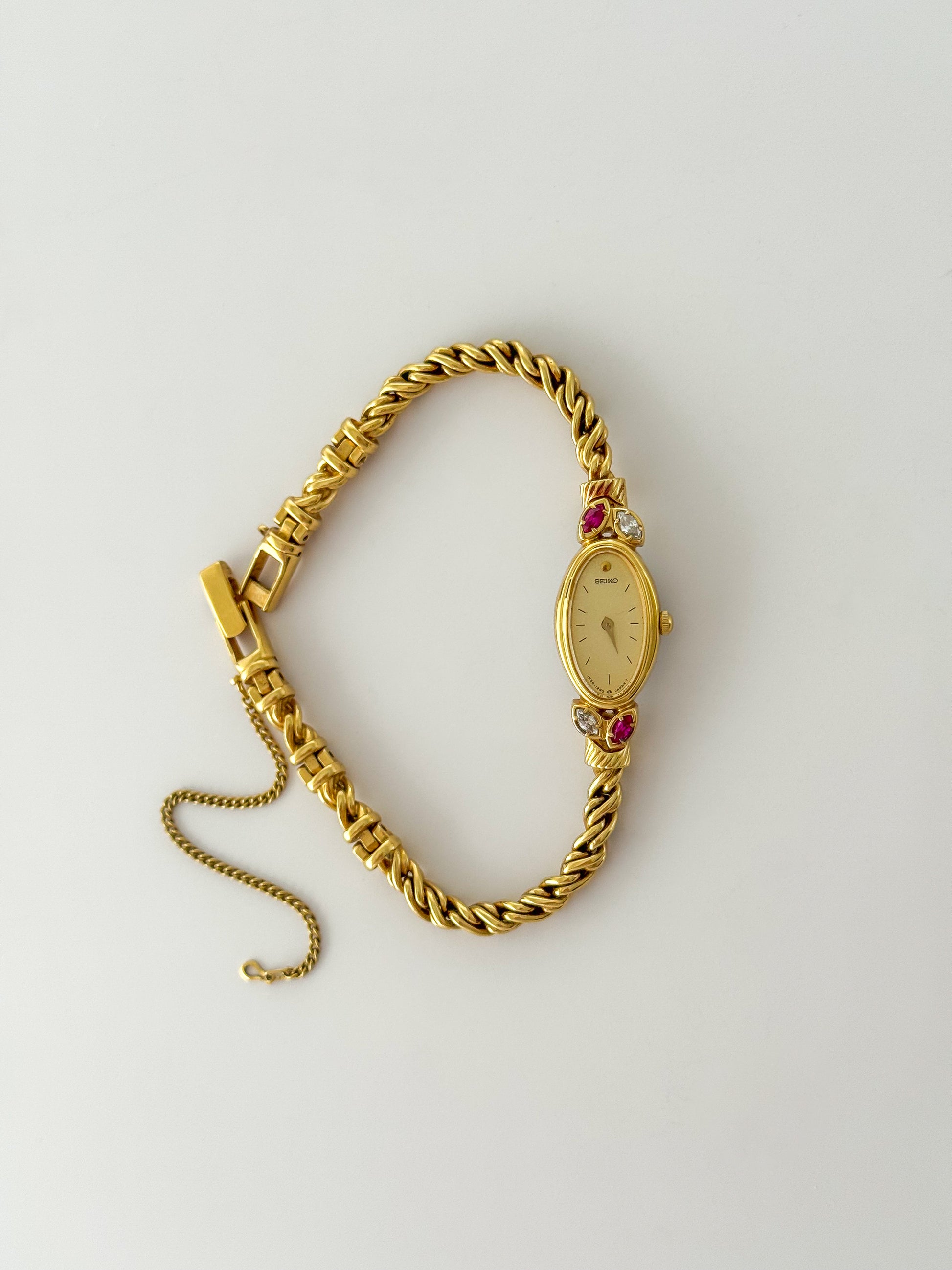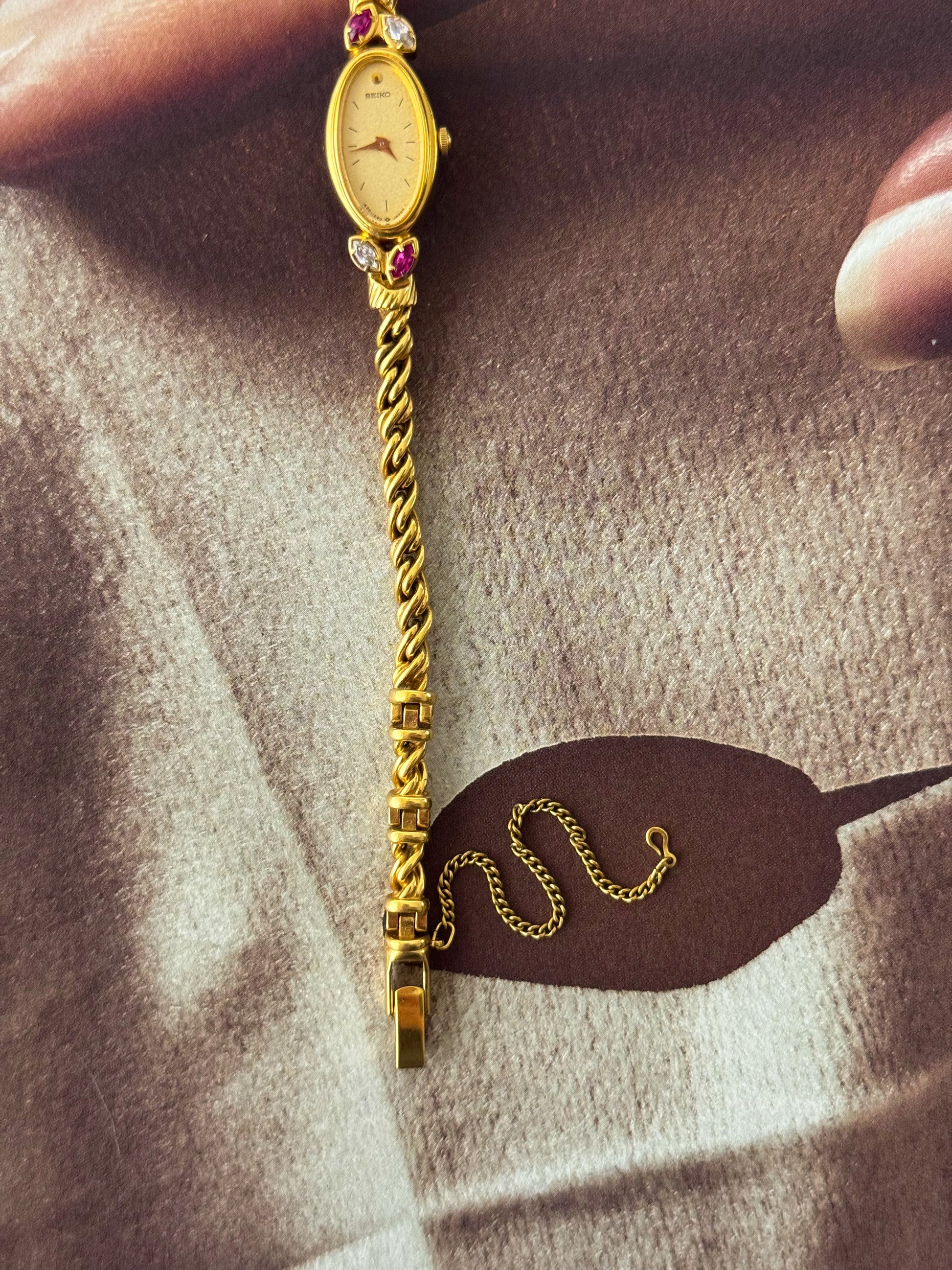 Extremely RARE 1990s Gold Plated Seiko Watch With Genuine Rubies And Rope Band