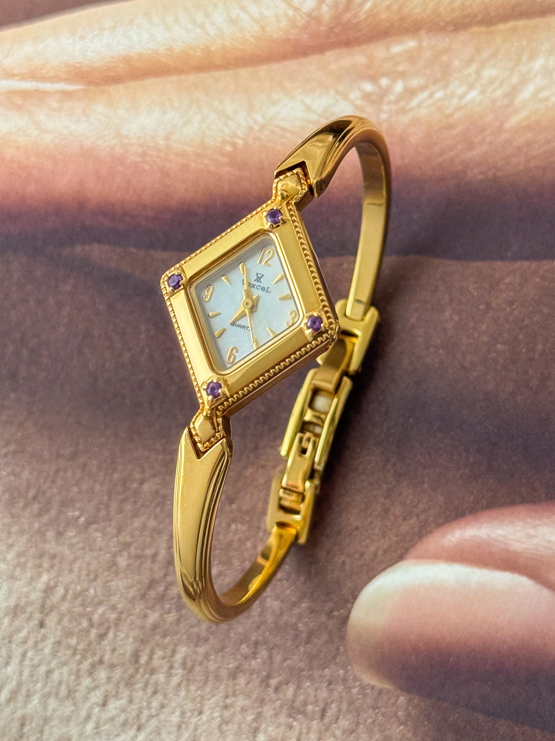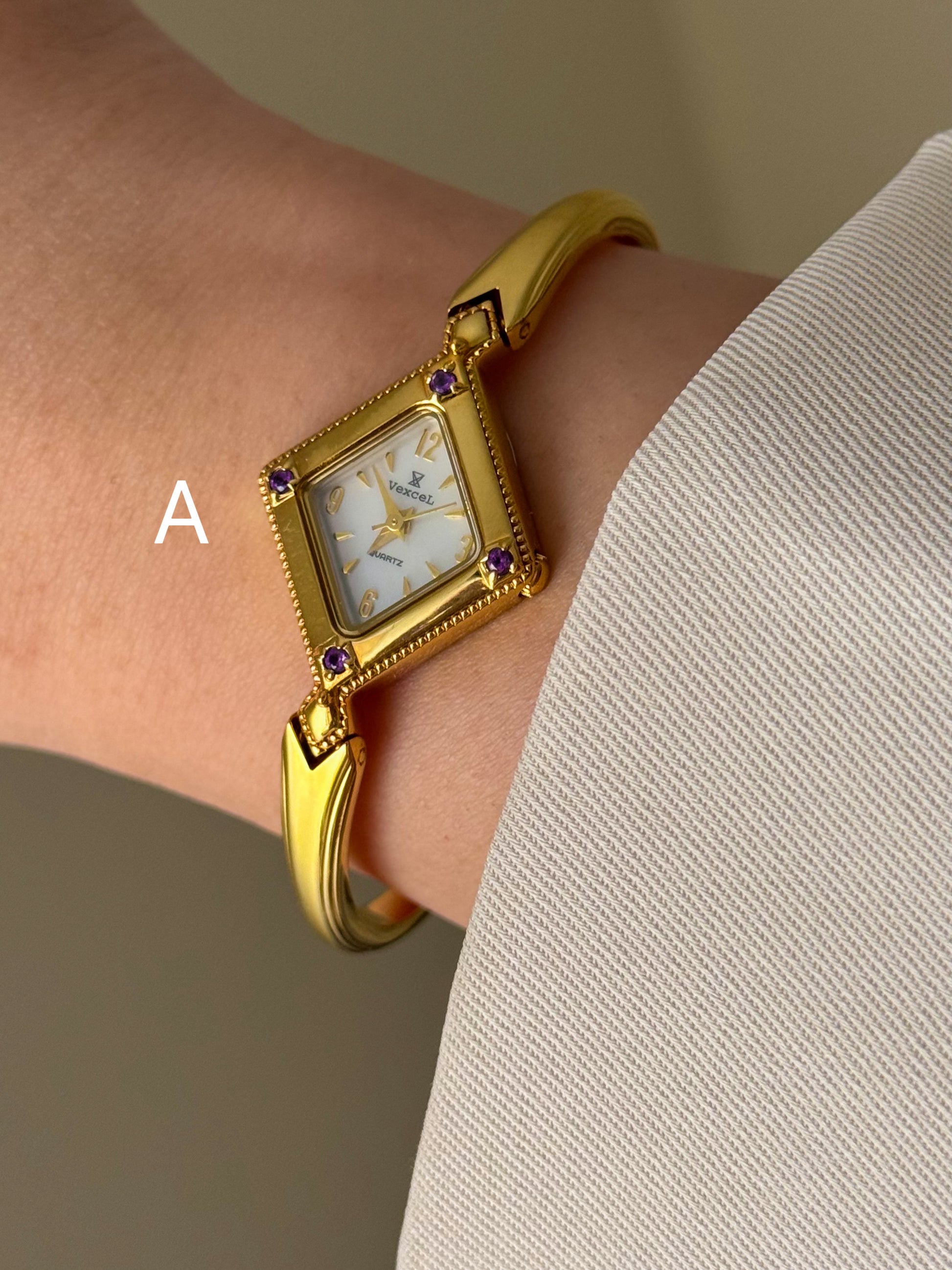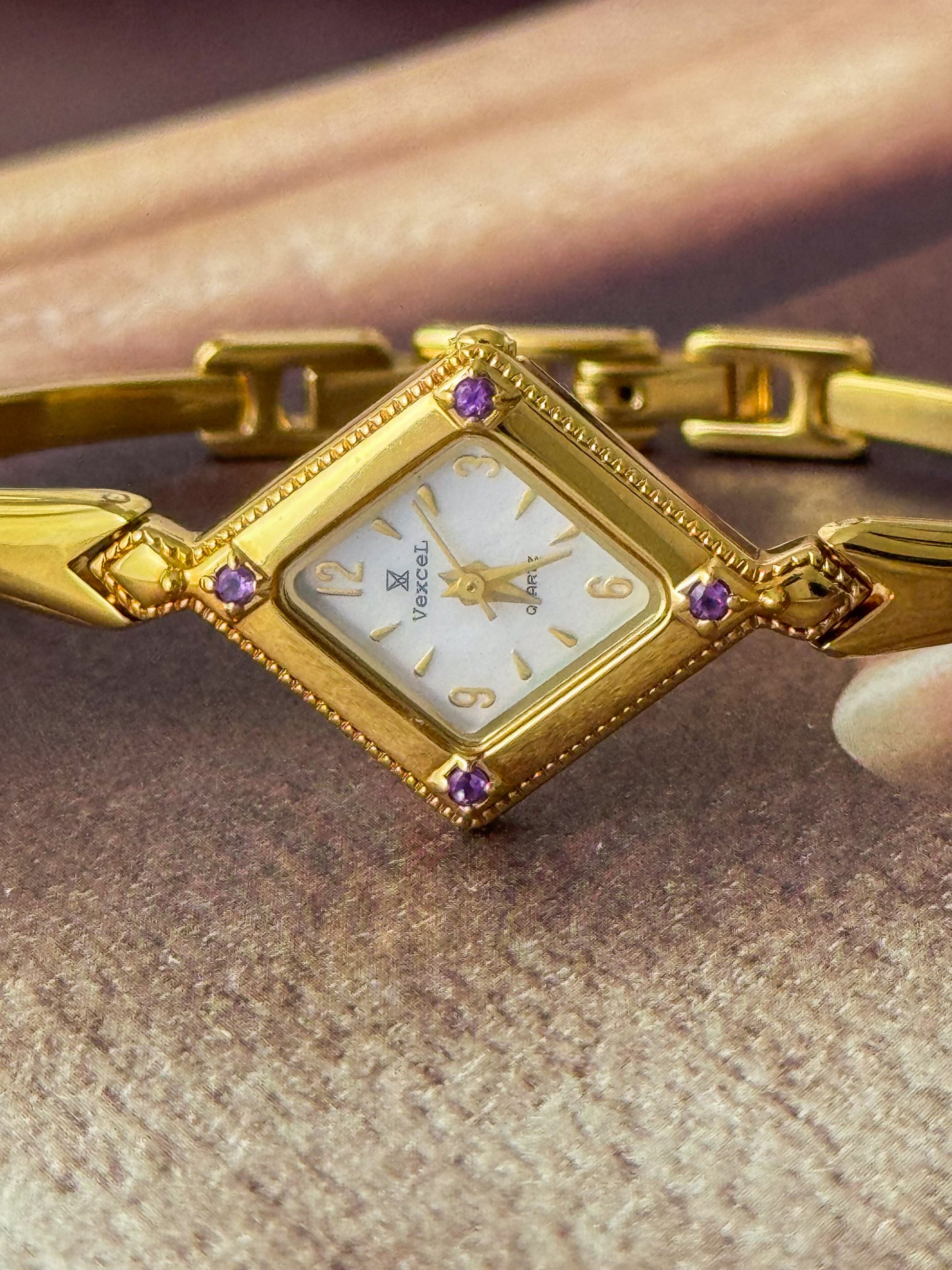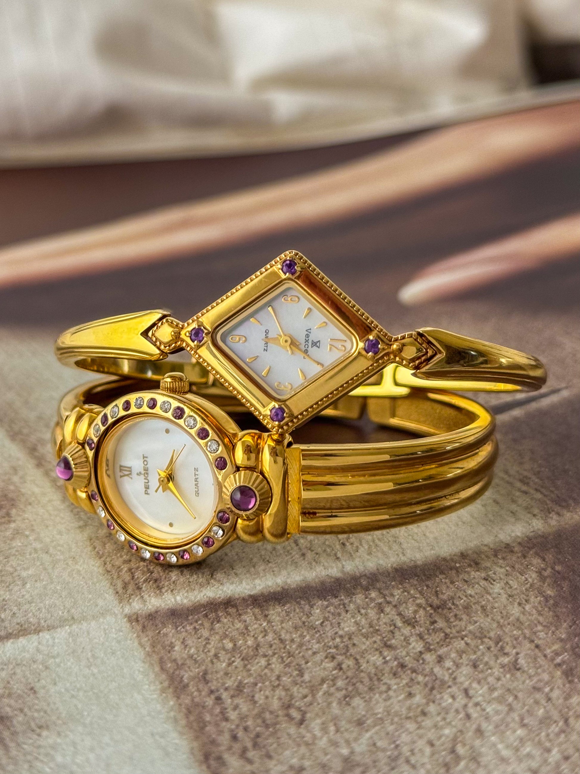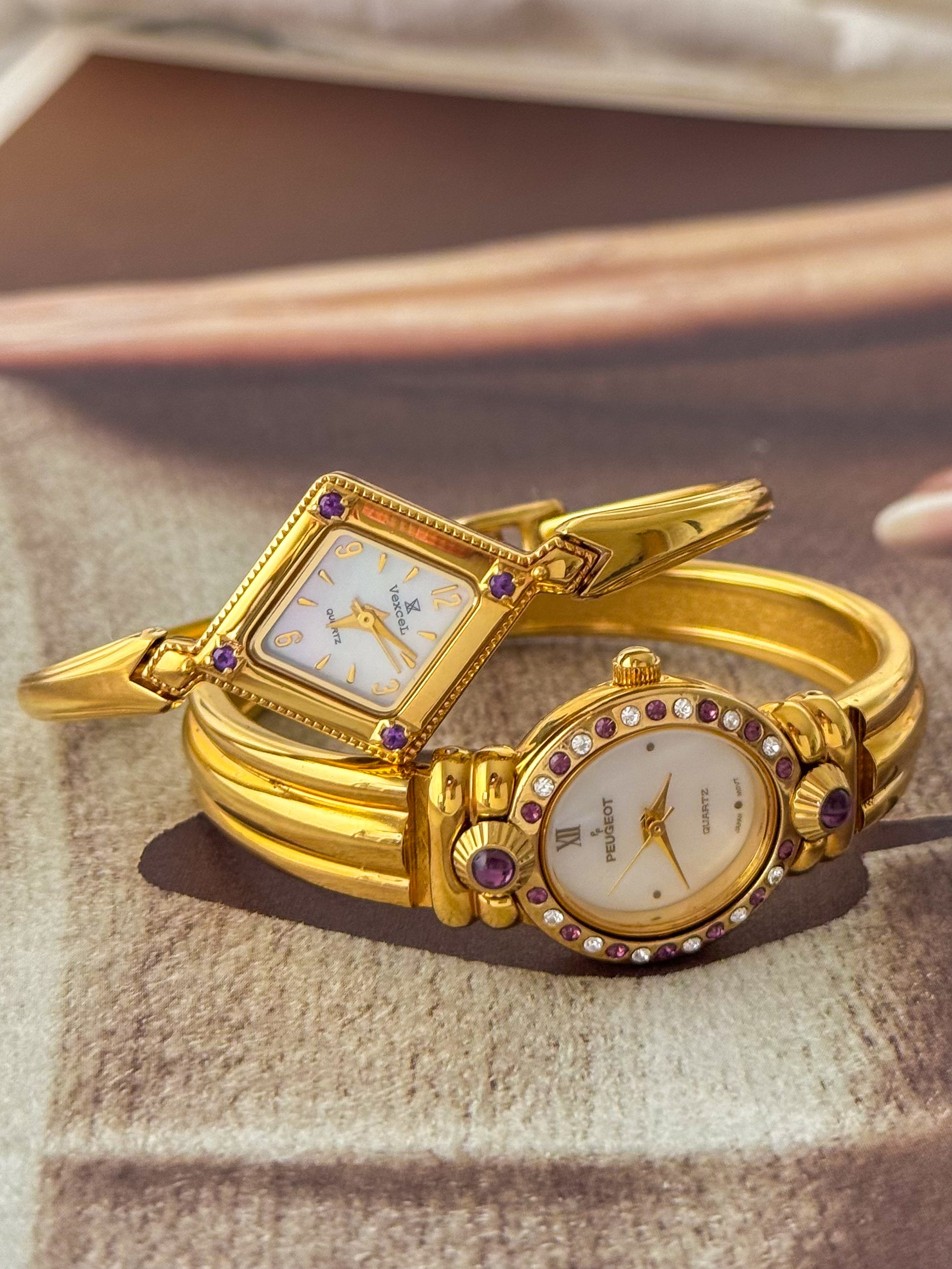 (Select a watch) Vintage Gold Bangle Watches With Purple Stones