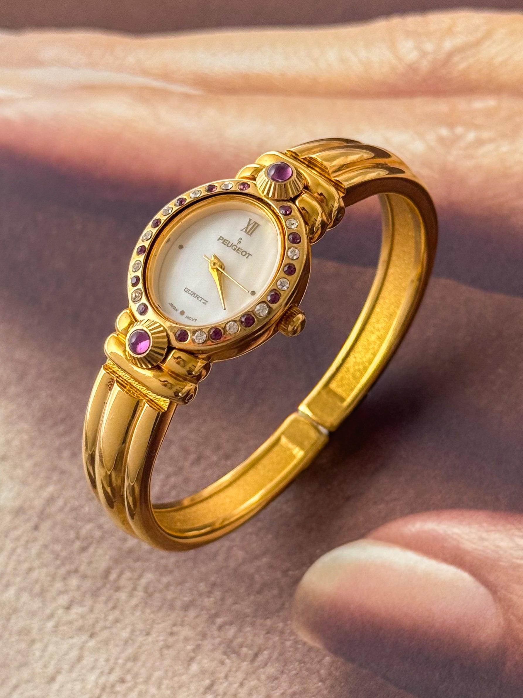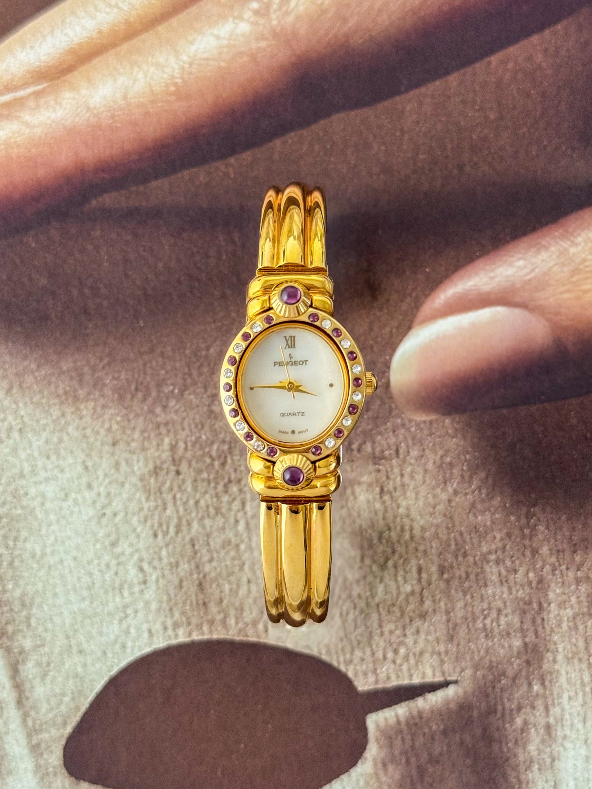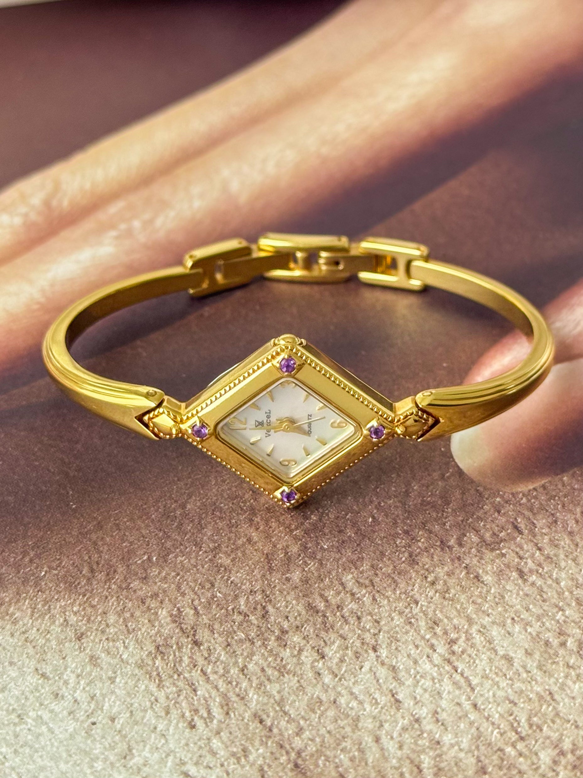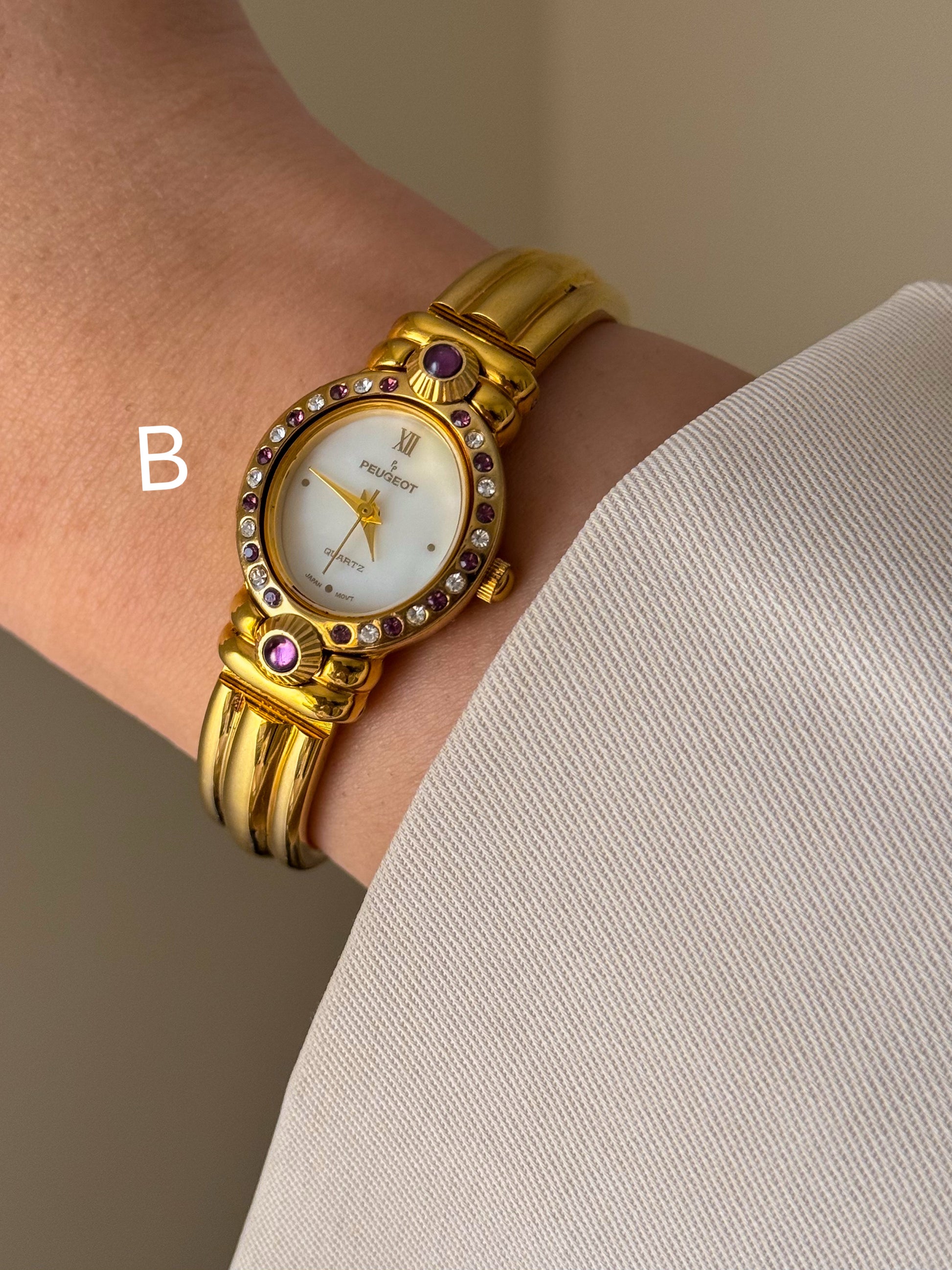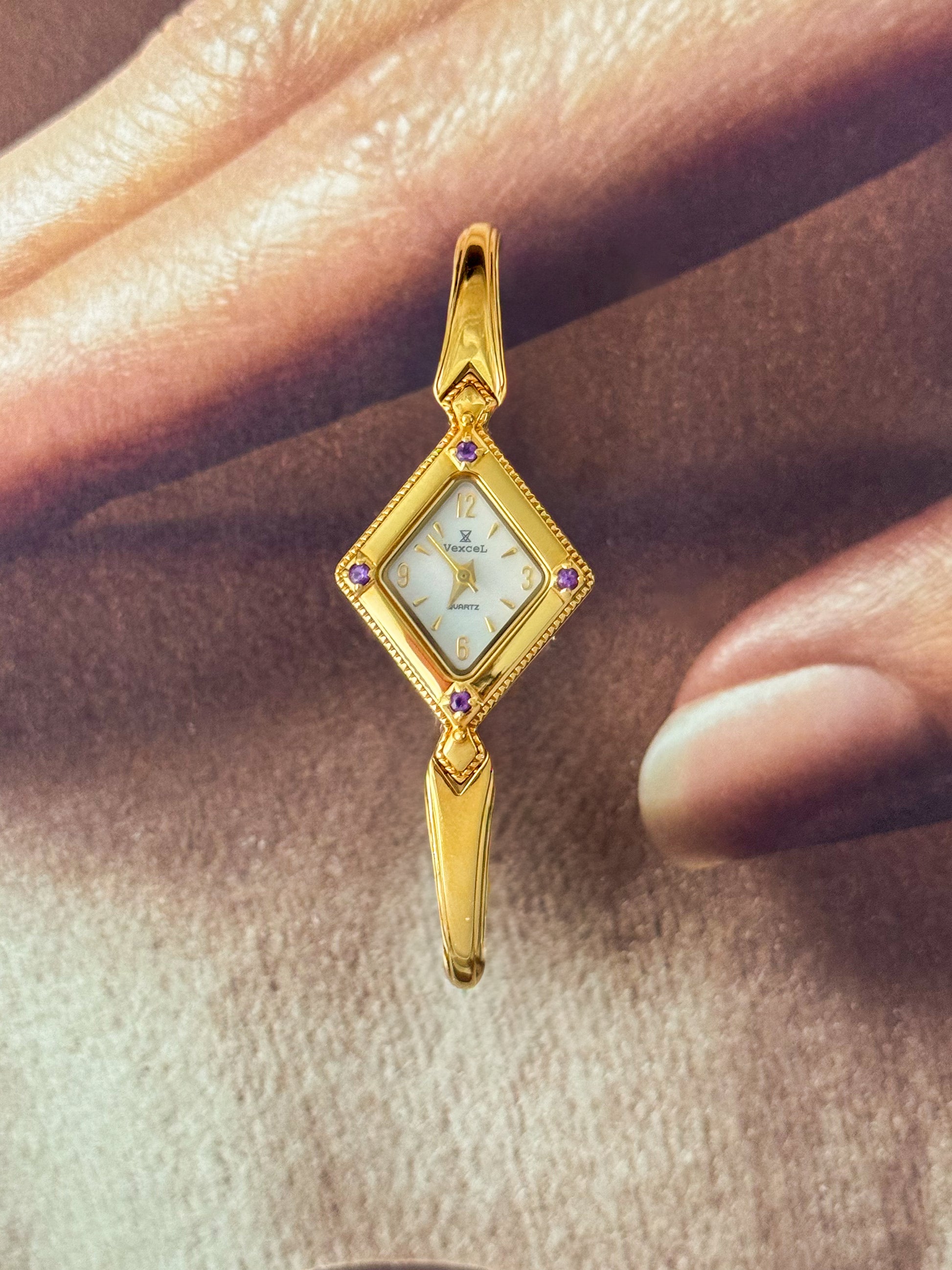 (Select a watch) Vintage Gold Bangle Watches With Purple Stones