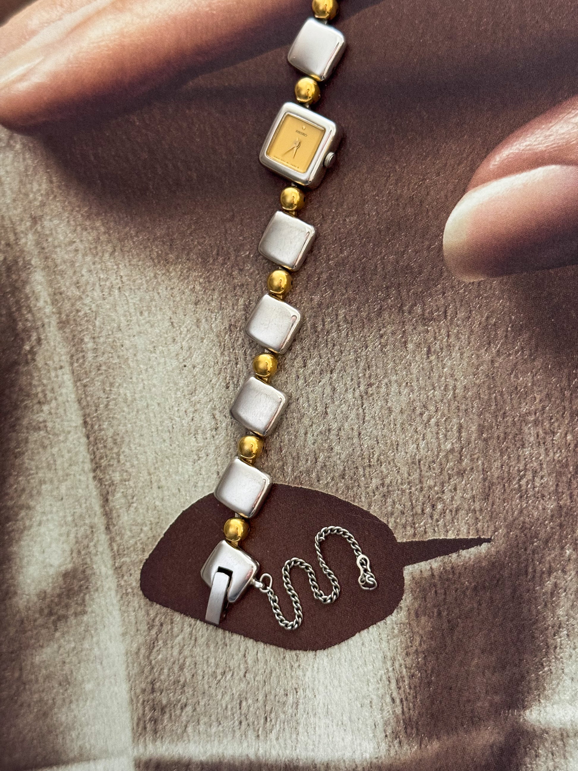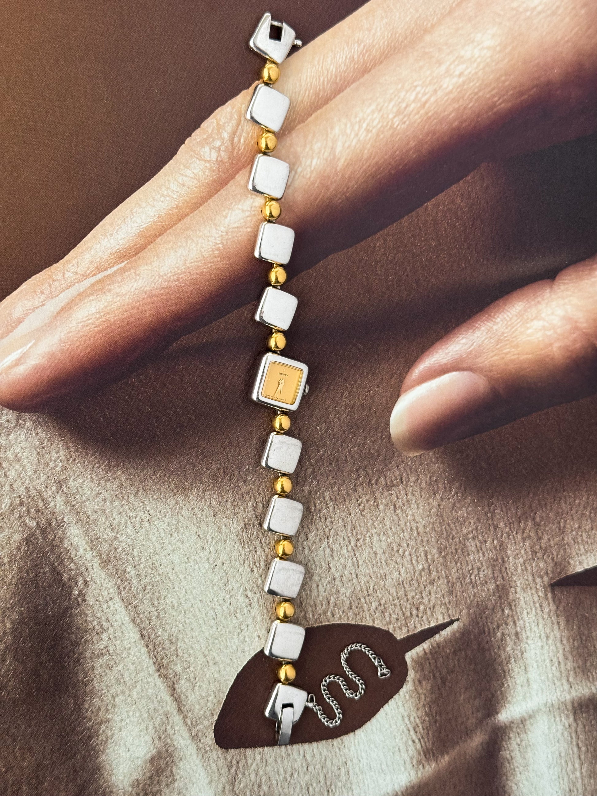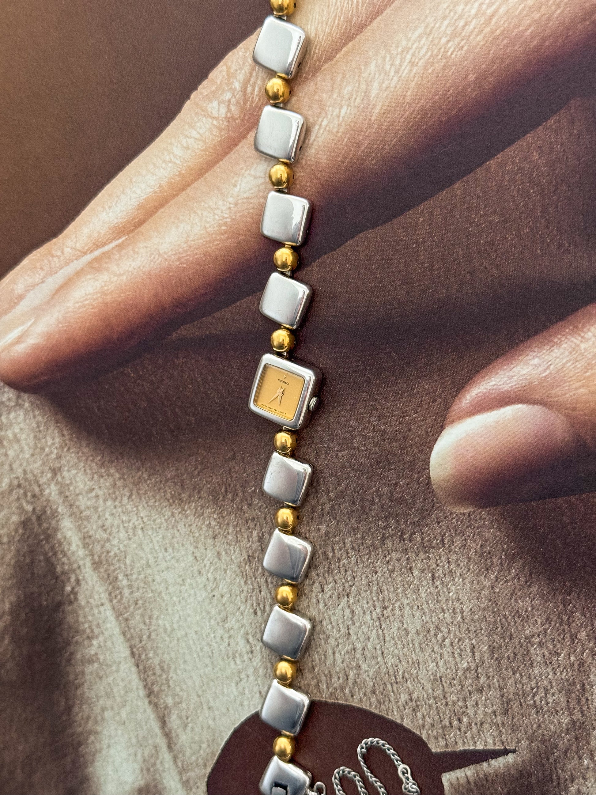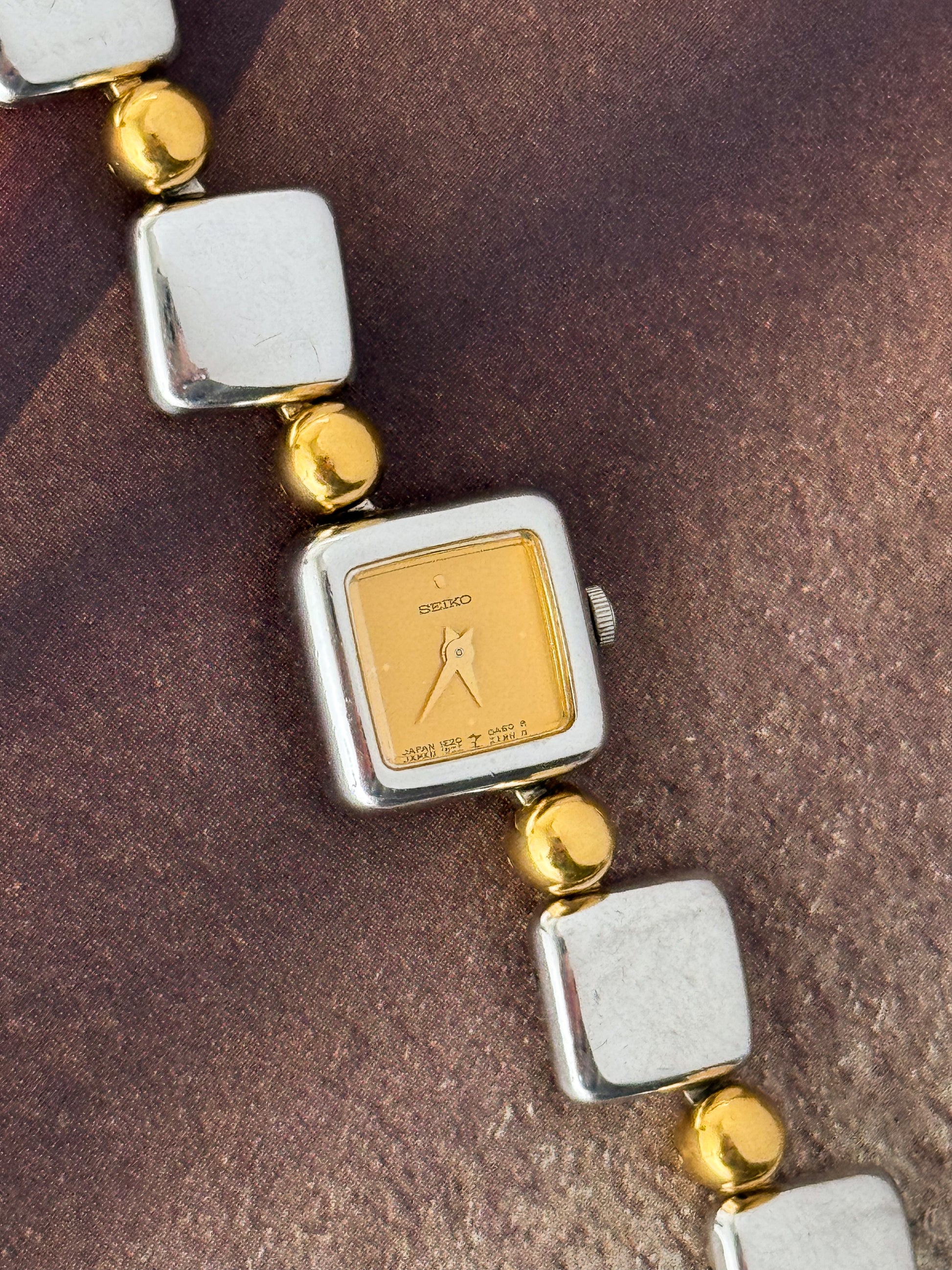 RARE Vintage Two Tone Seiko Stainless Steel Watch With Square Case and Band