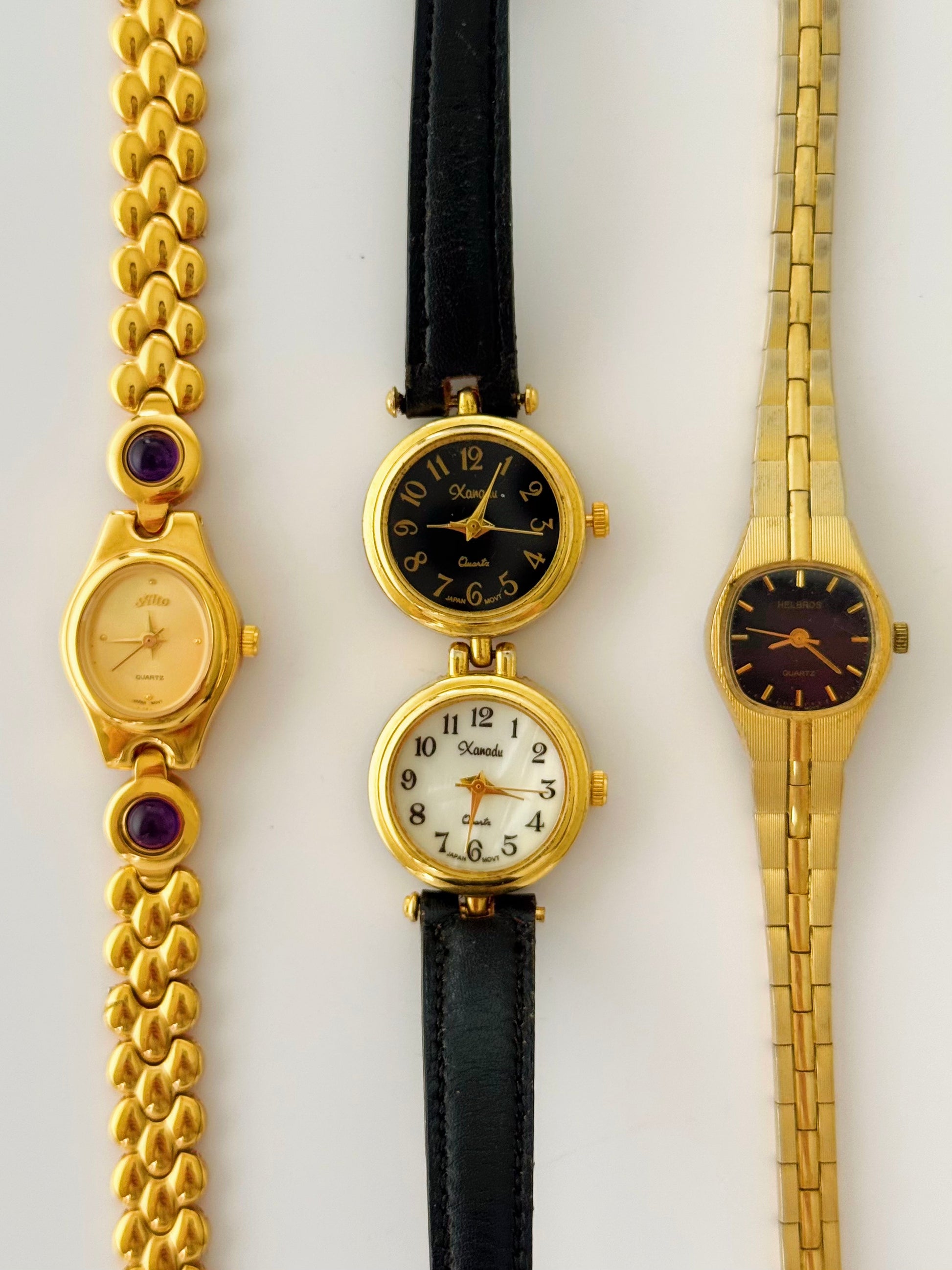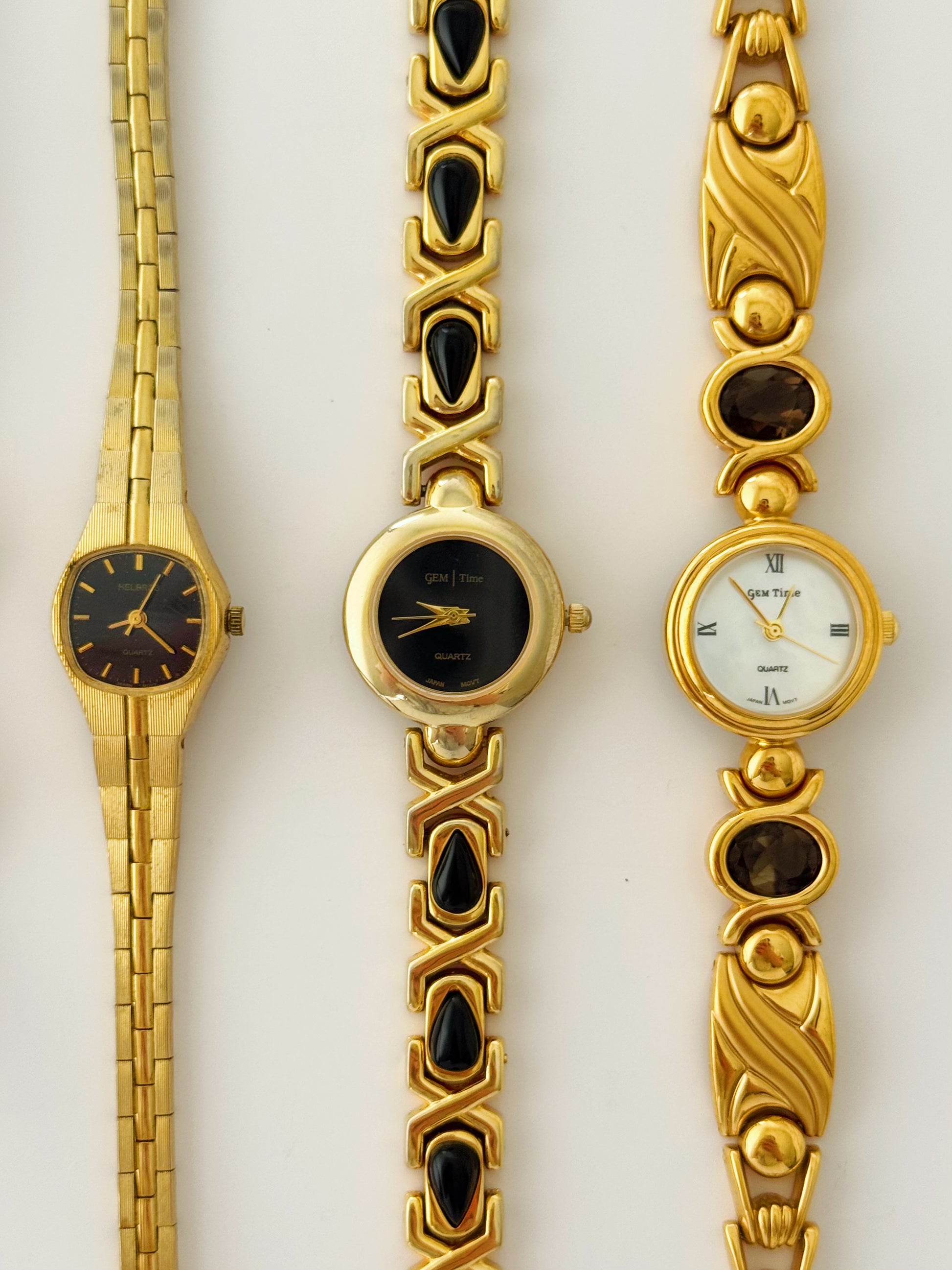 All watches are sold as is and all sales are Final. Due to the vintage nature of this product, refunds/exchange are not accepted. Please read our refund policy for more information and review all listing photos and description throughly before making a purchase. These watches are vintage and preowned so please expect wear and tear which include but not limited to scratches/gold fading throughout the watch. Watch pricing are determined based on their style and working/physical condition!