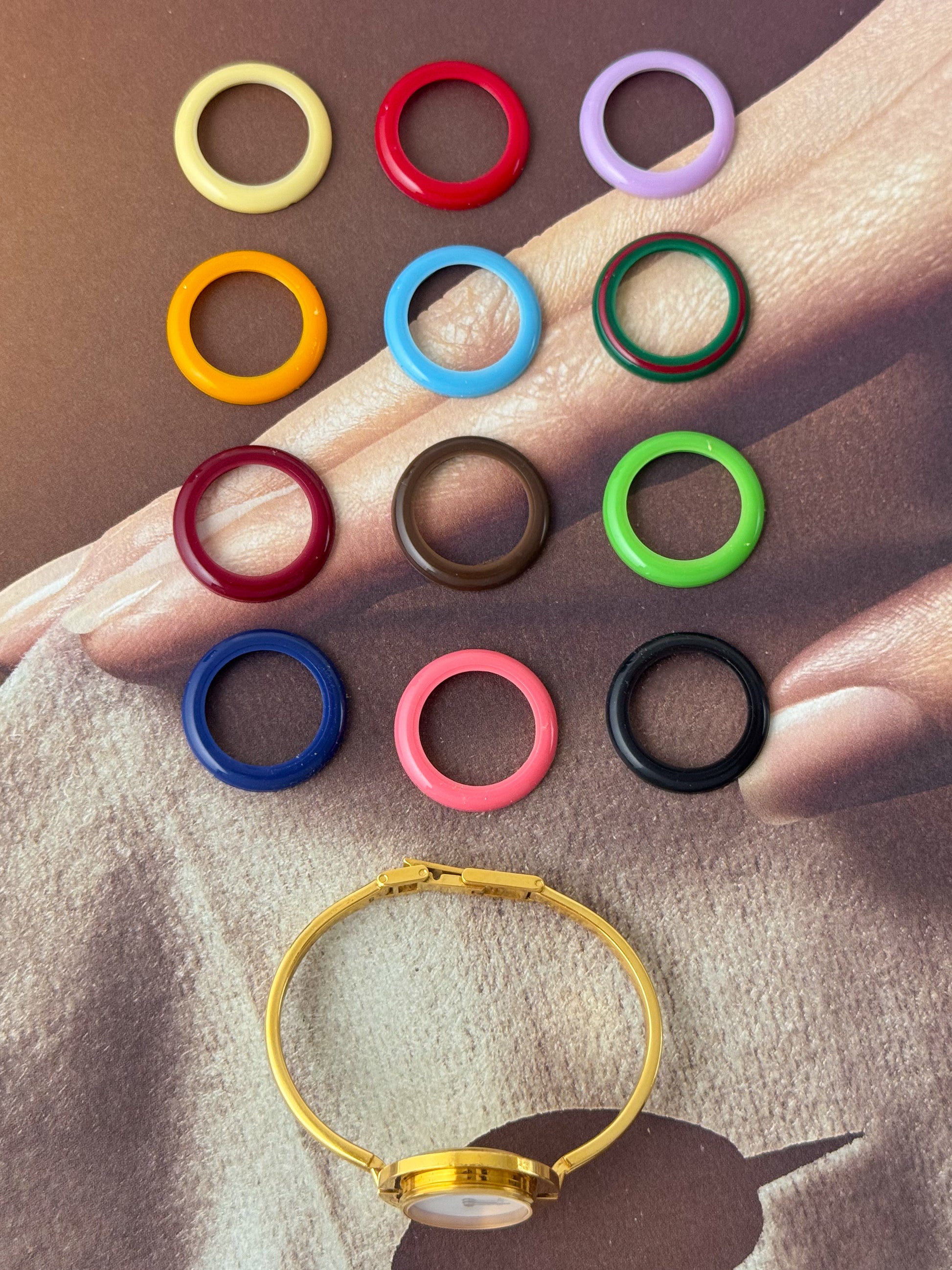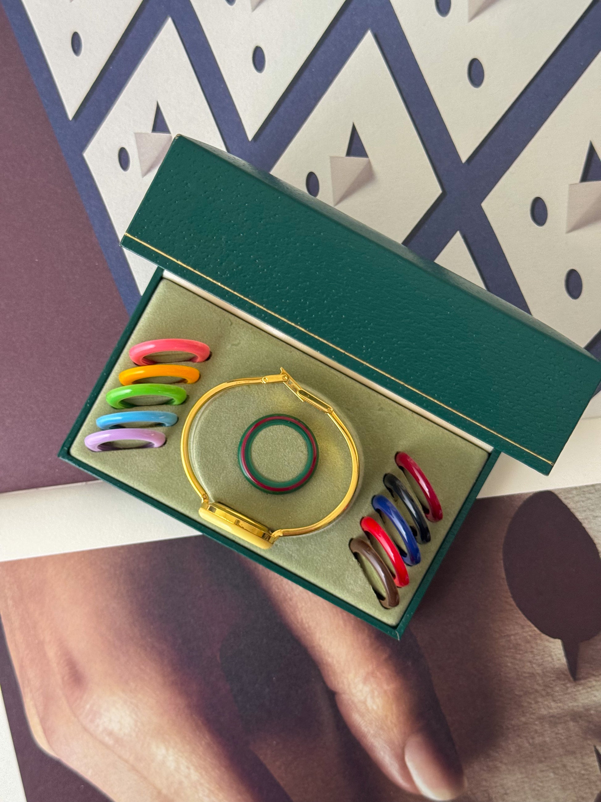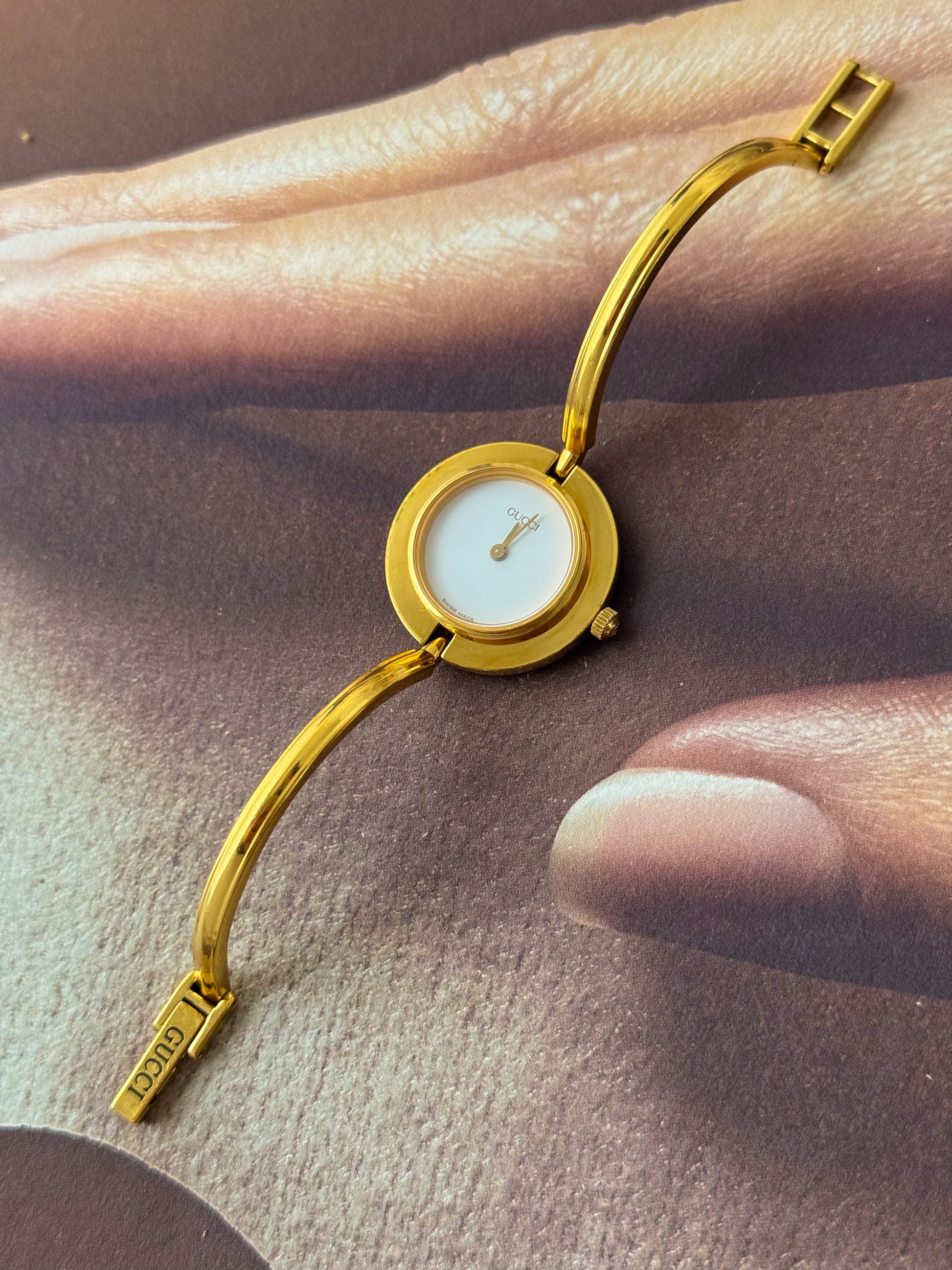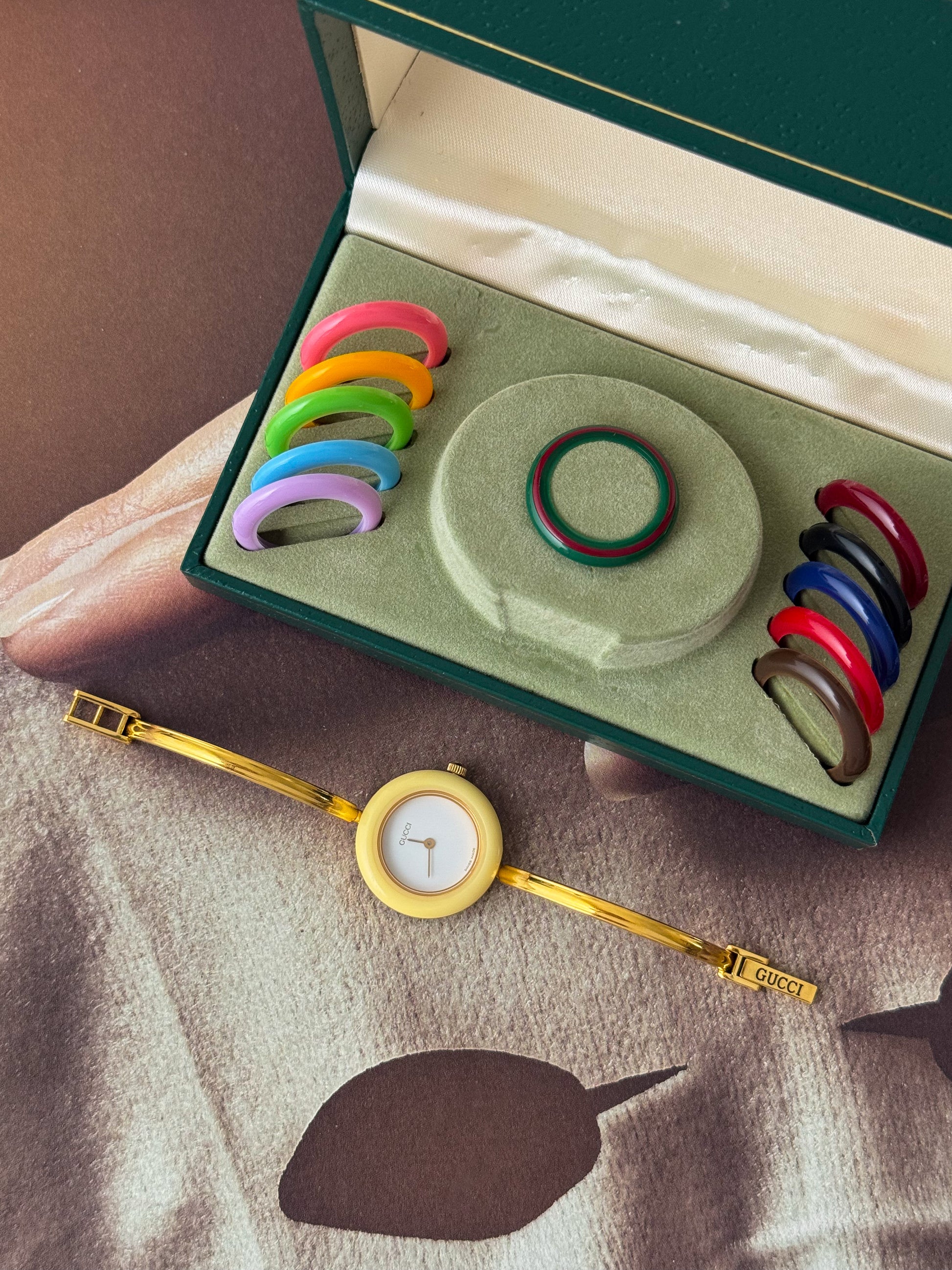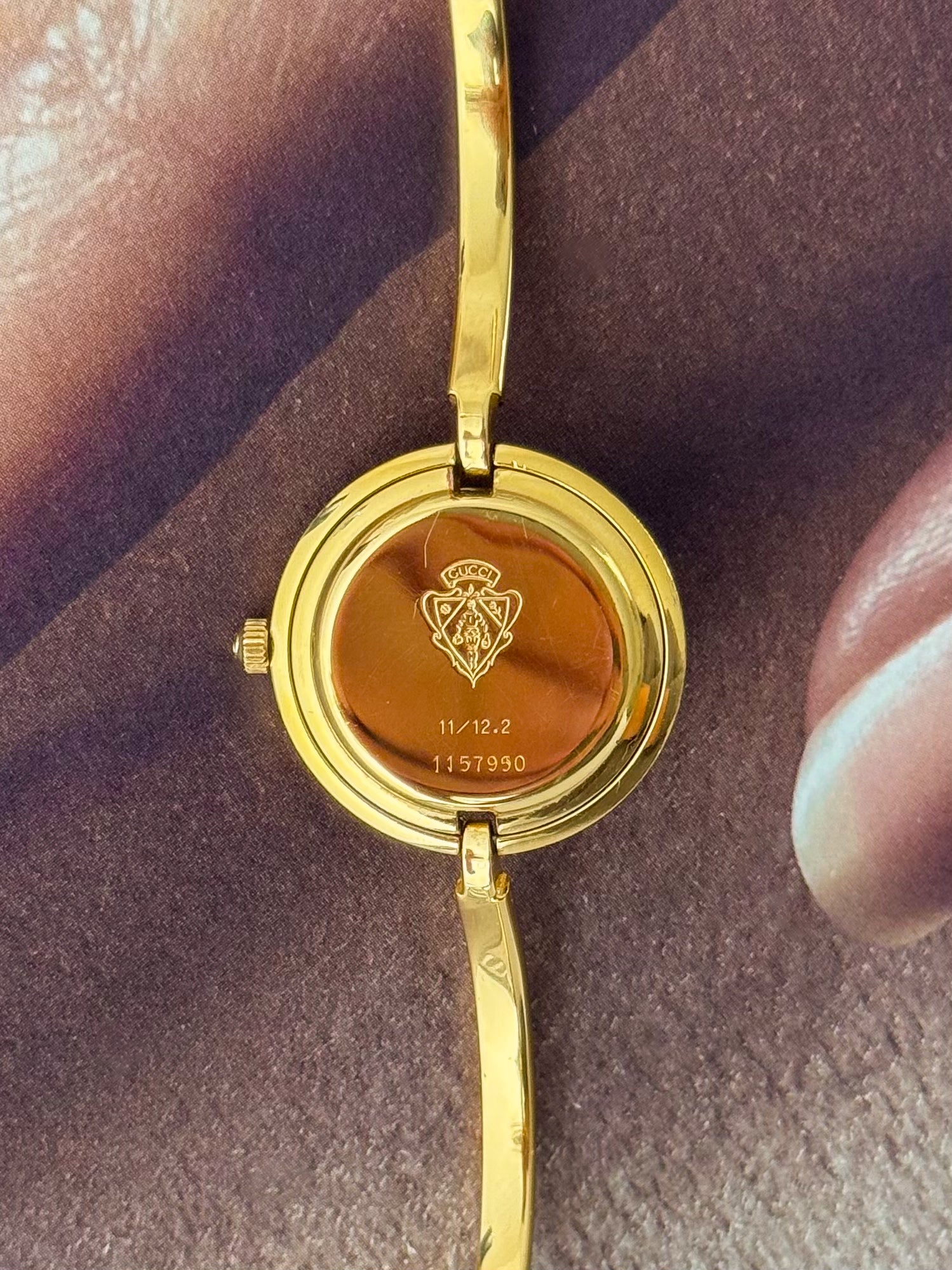 Vintage 1980s Gold Plated Gucci Interchangeable Bezel Watch Bangle