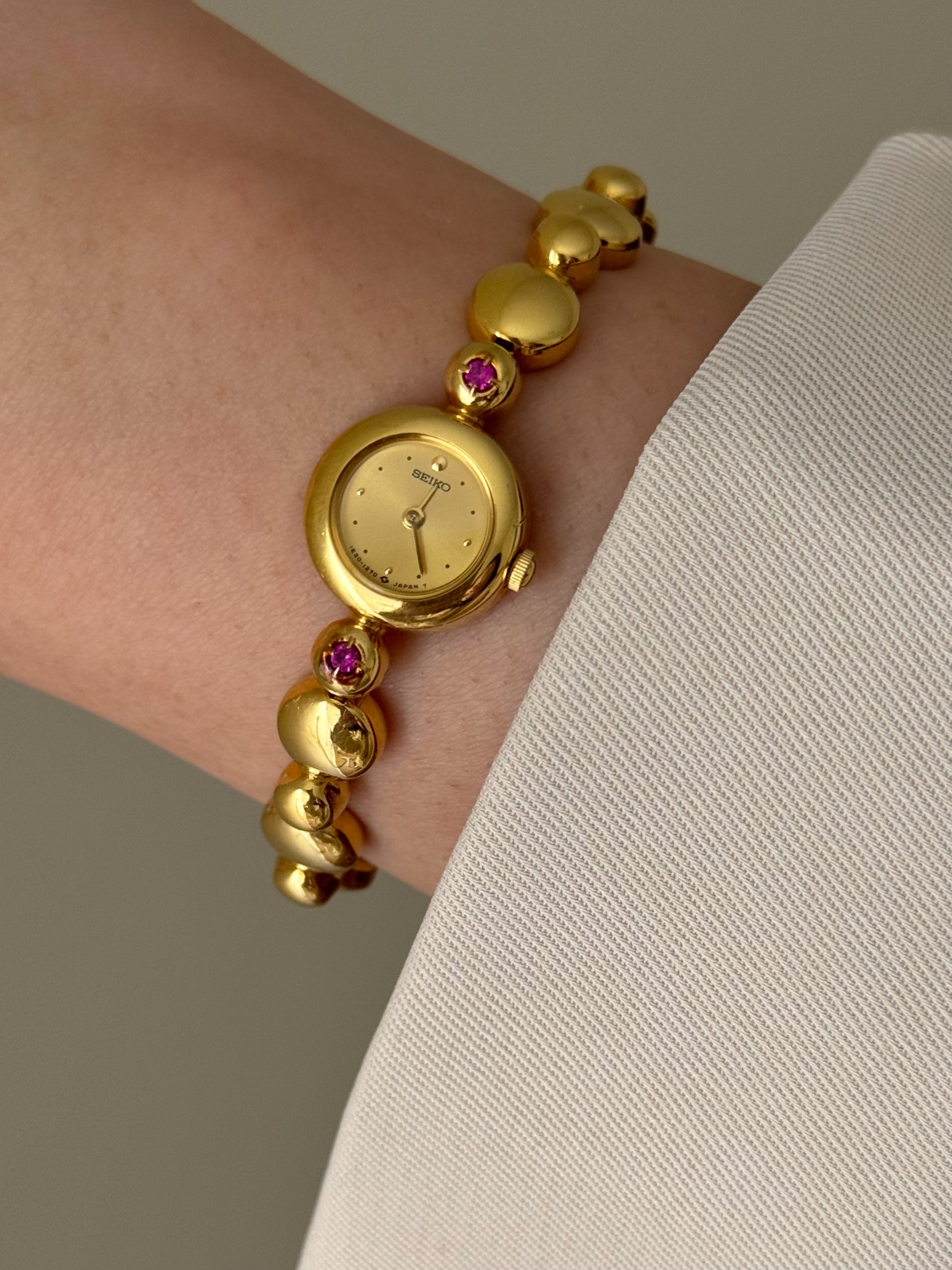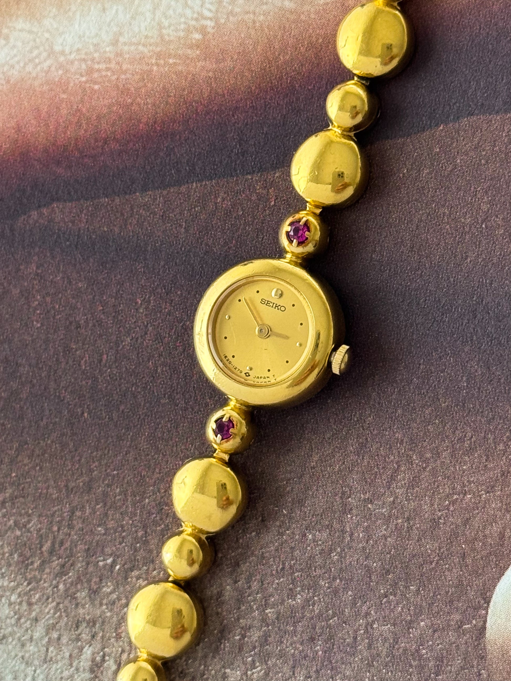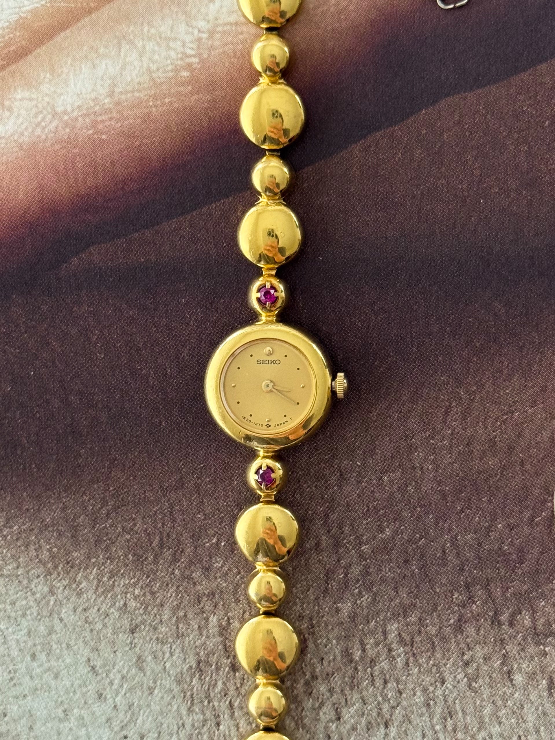 Vintage Gold Seiko Watch With Genuine Rubies Bubble Band