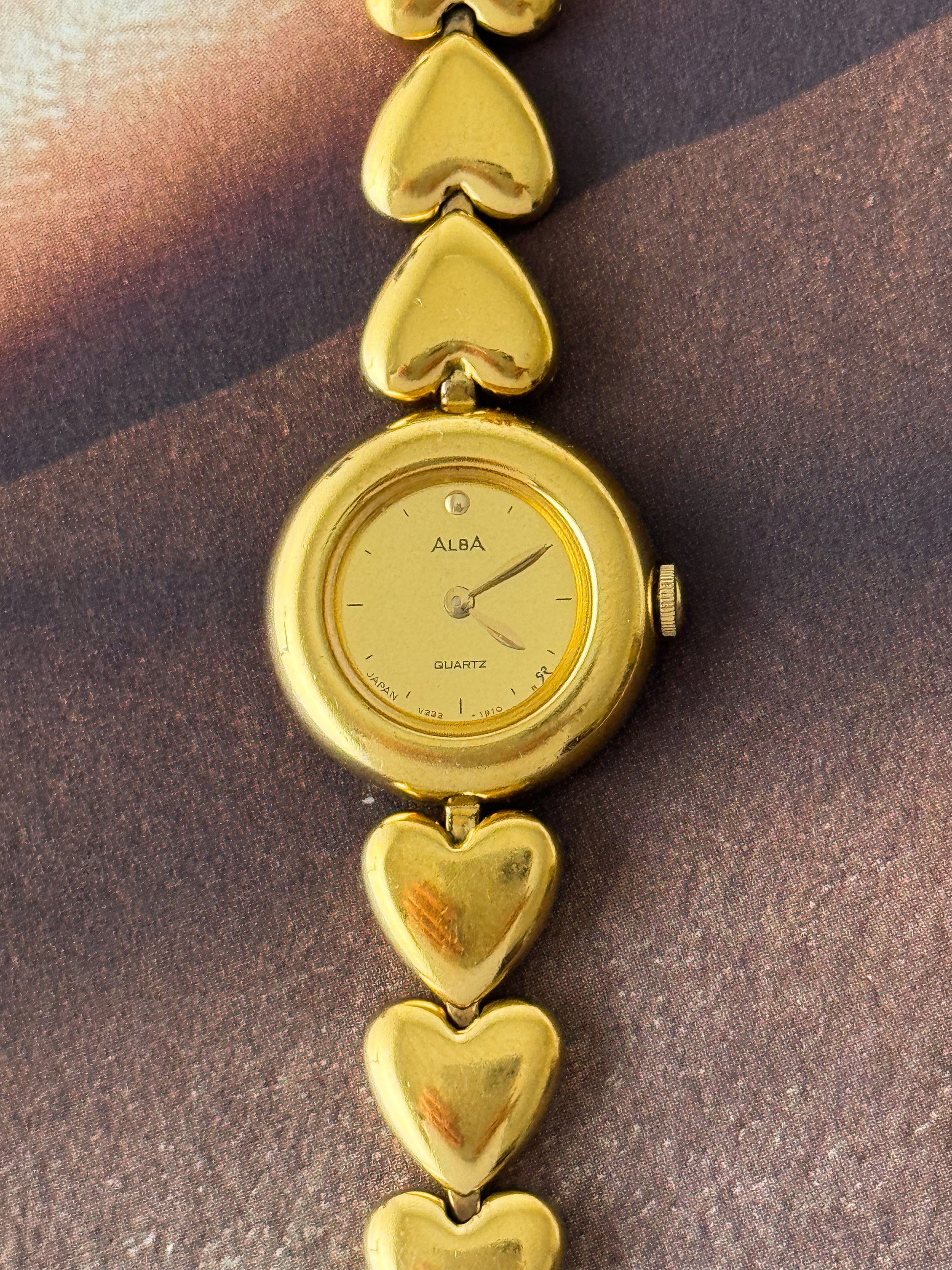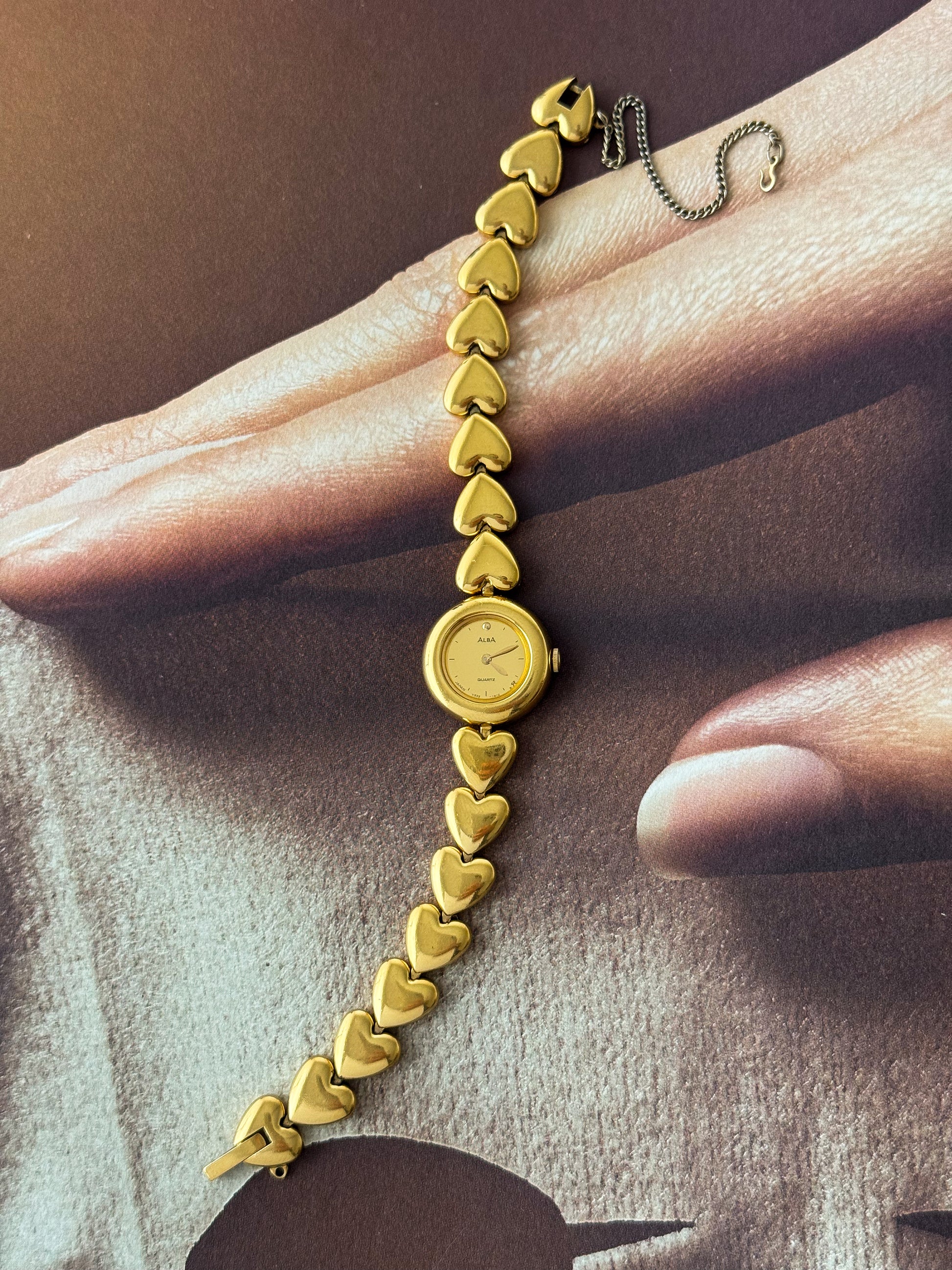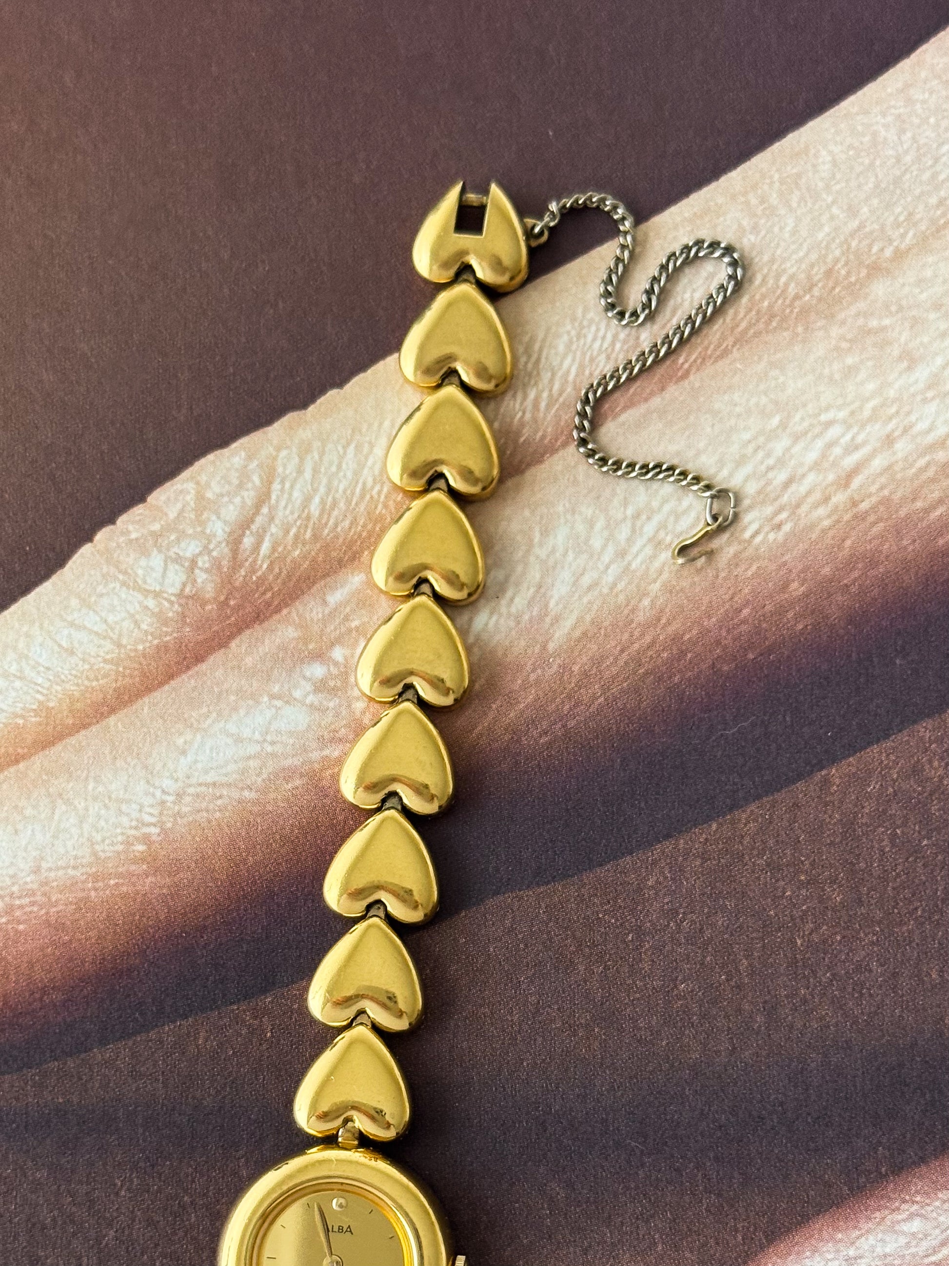 Vintage Gold Seiko Watch With Mirror Dial and Heart Band