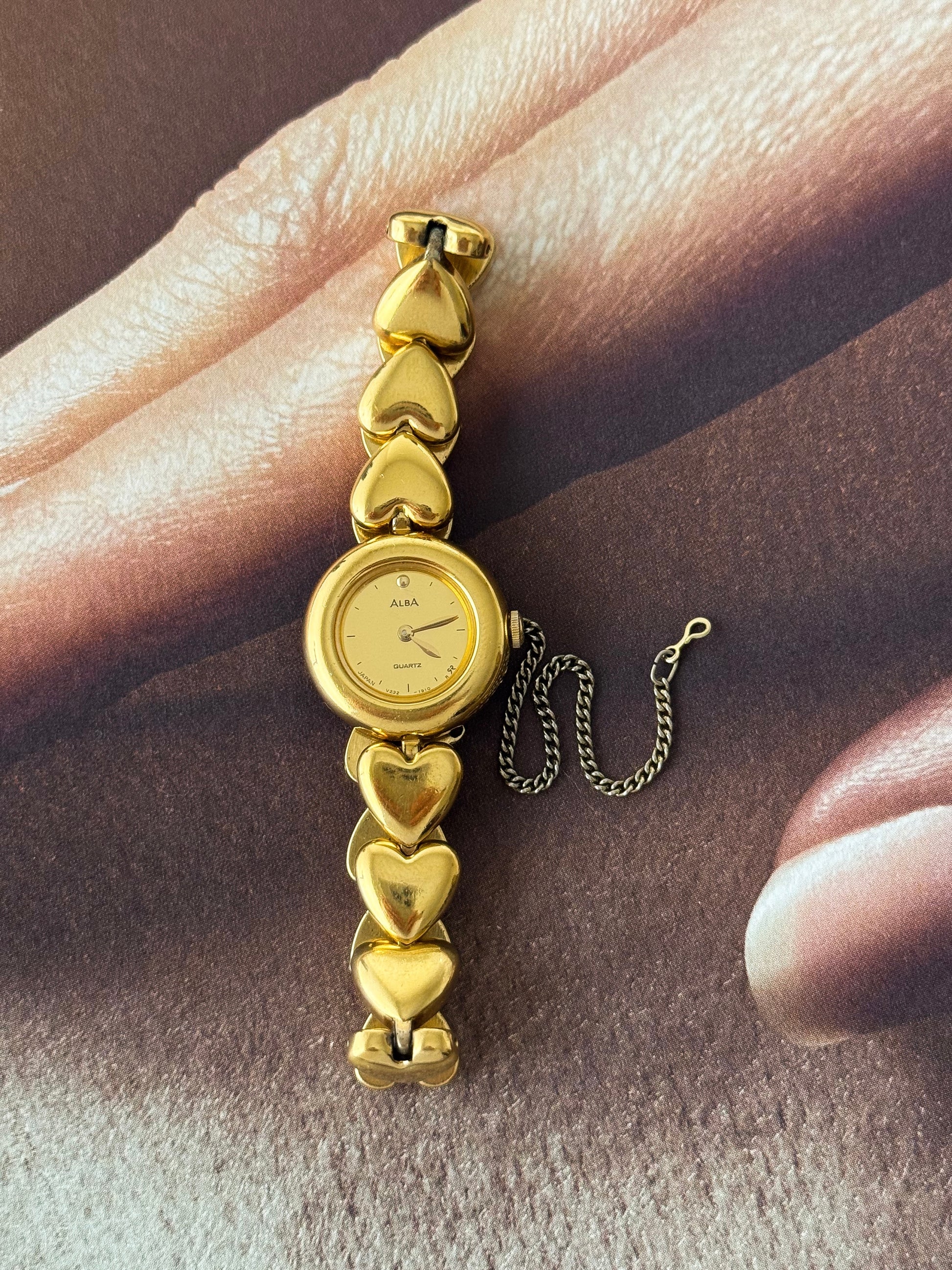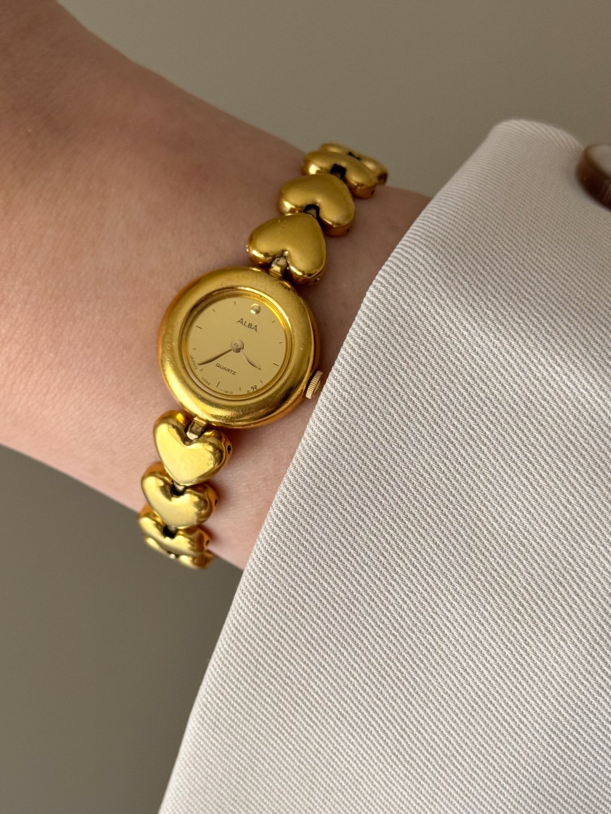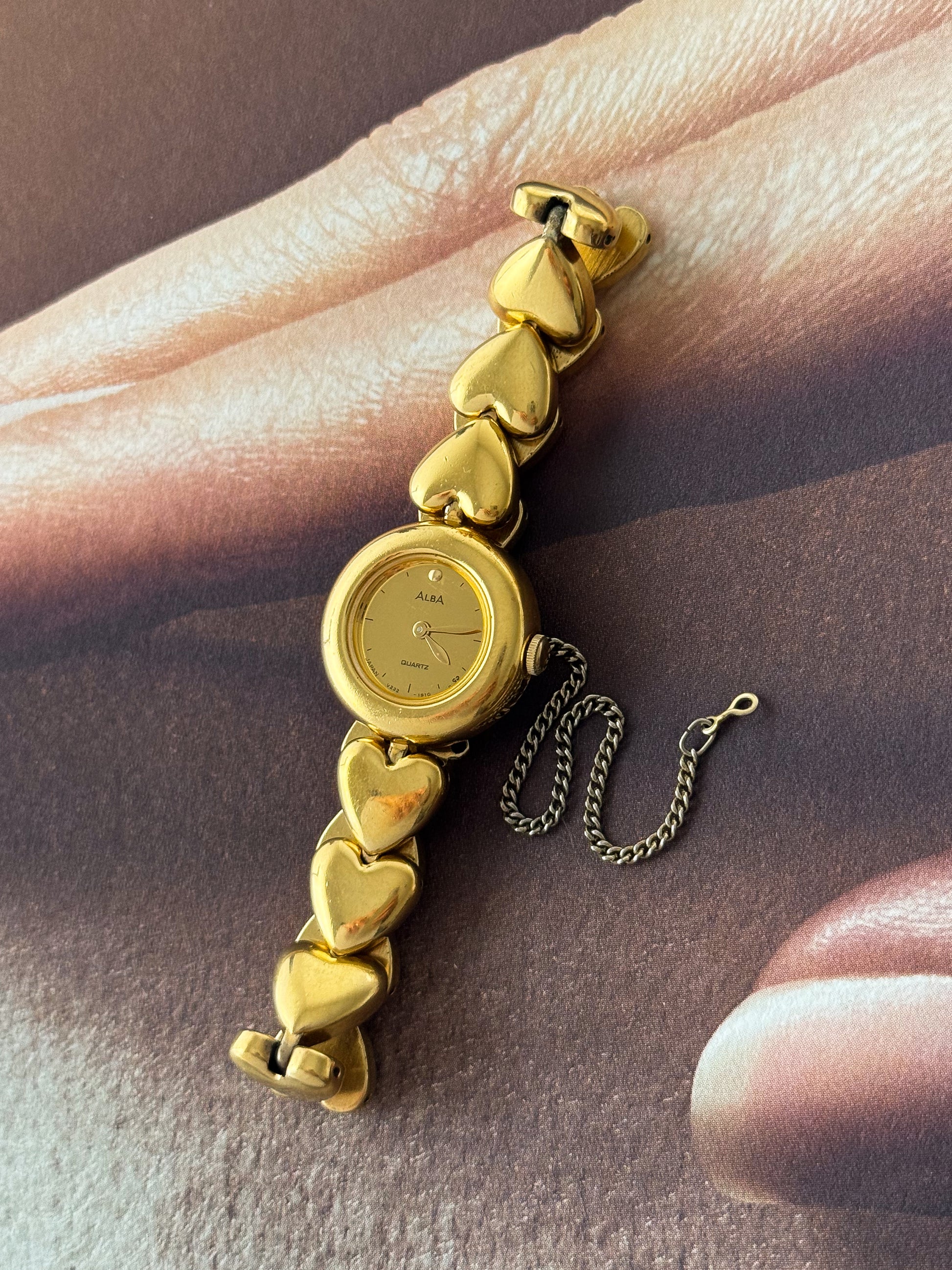 Vintage Gold Seiko Watch With Mirror Dial and Heart Band
