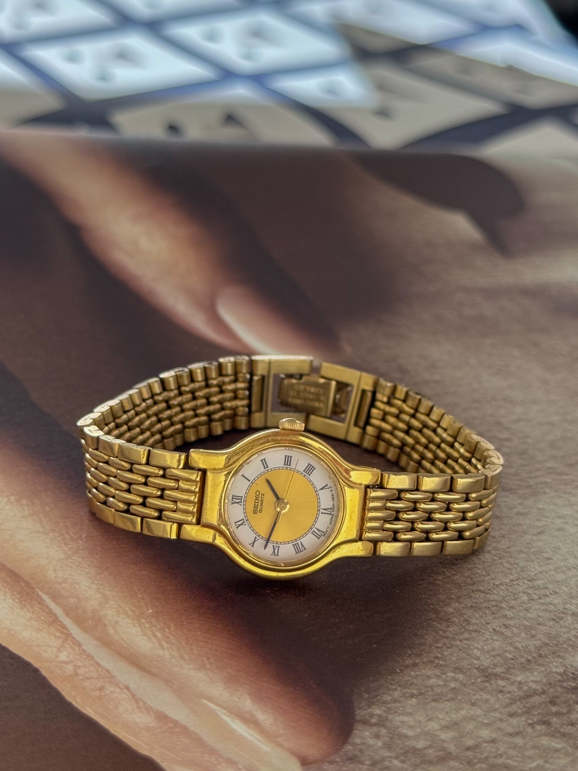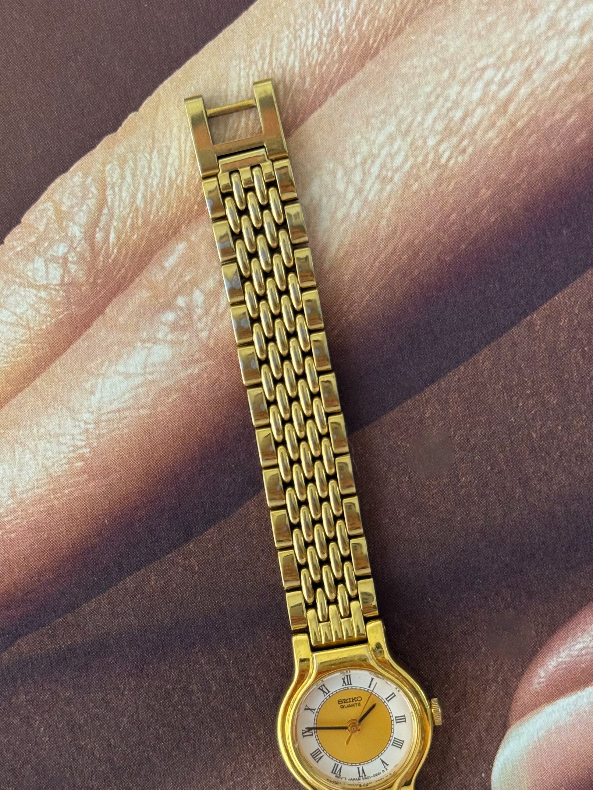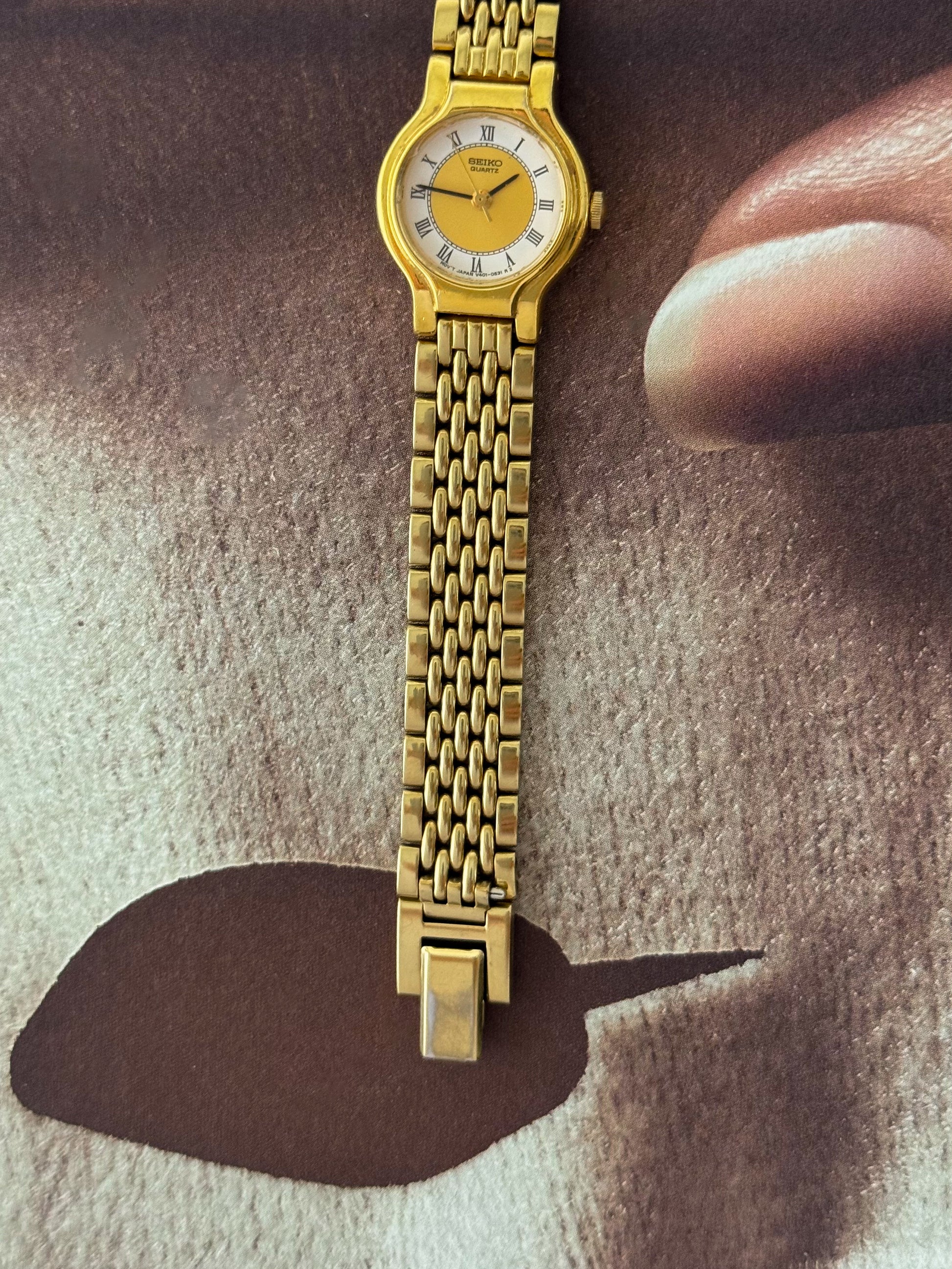 Vintage Ladies’s Gold Seiko Watch With Gold Center White Dial