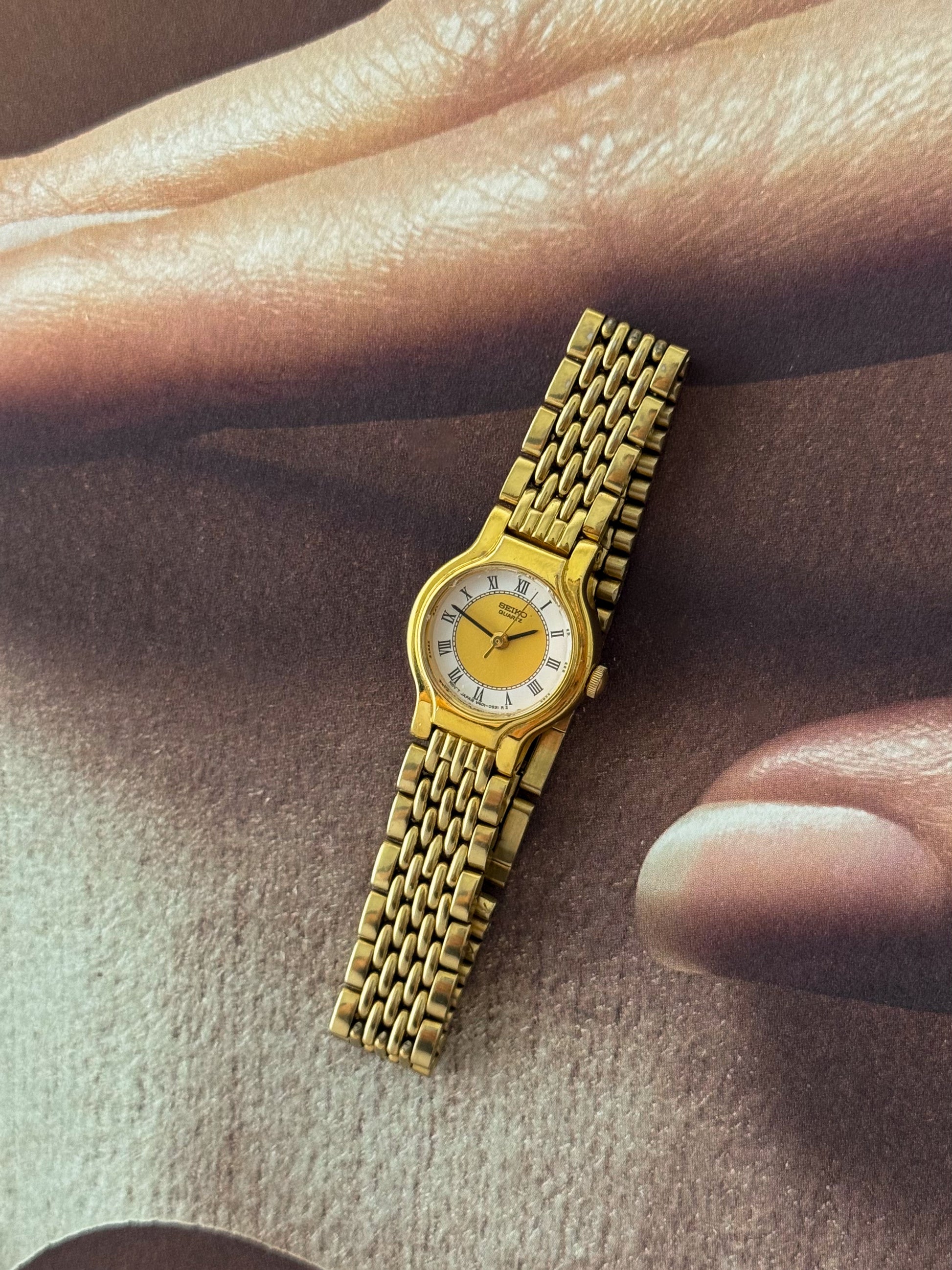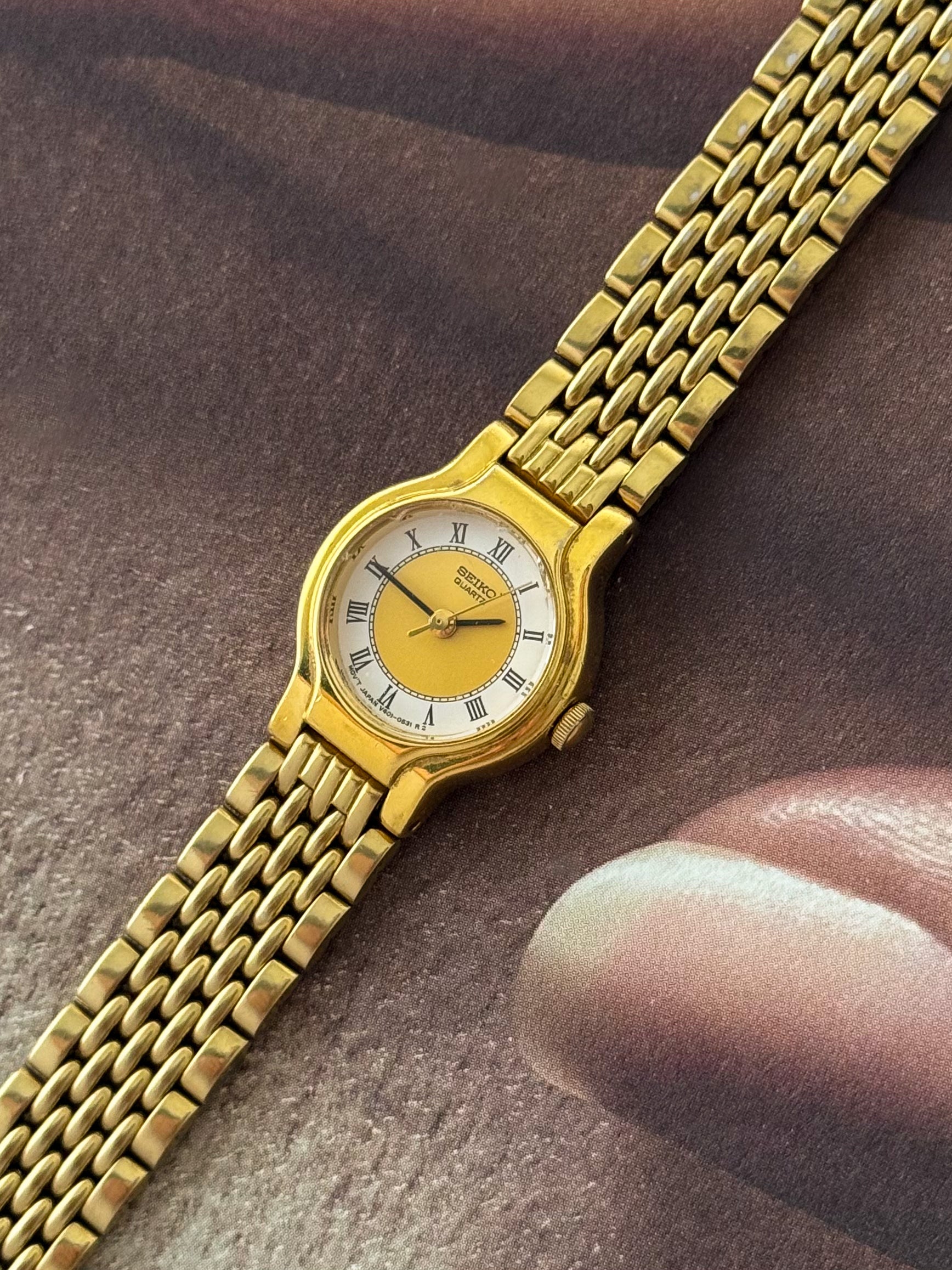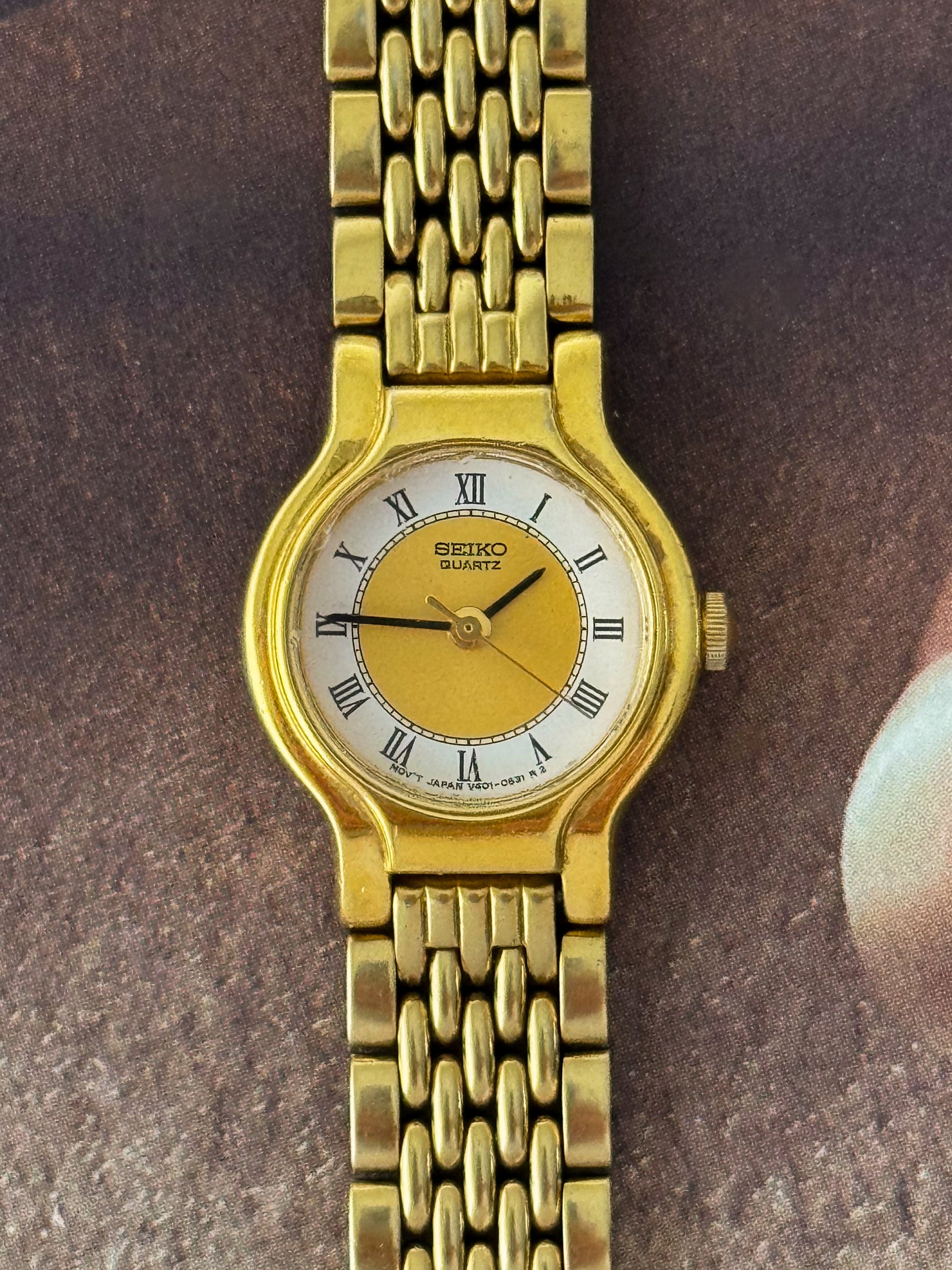 Vintage Ladies’s Gold Seiko Watch With Gold Center White Dial