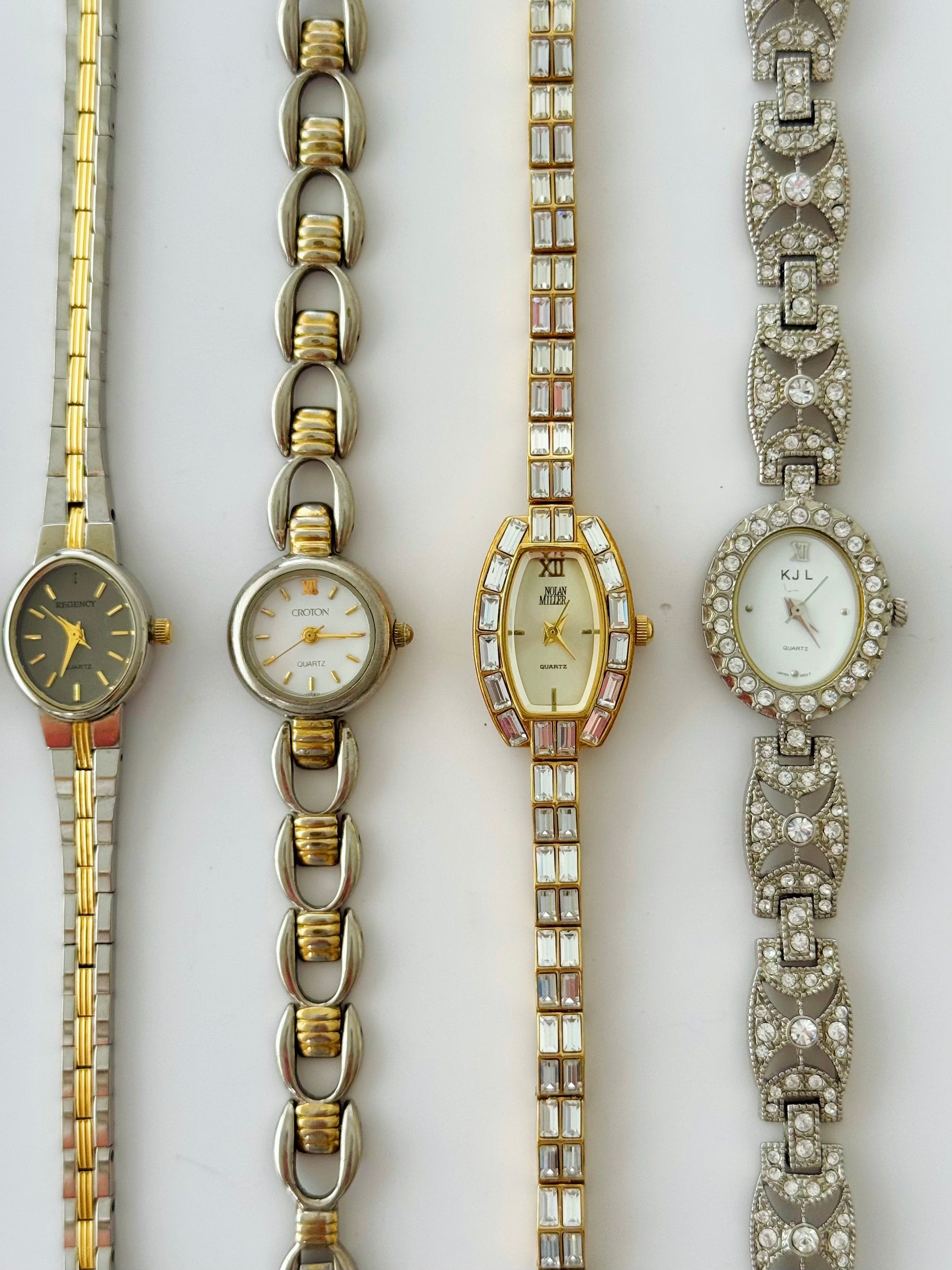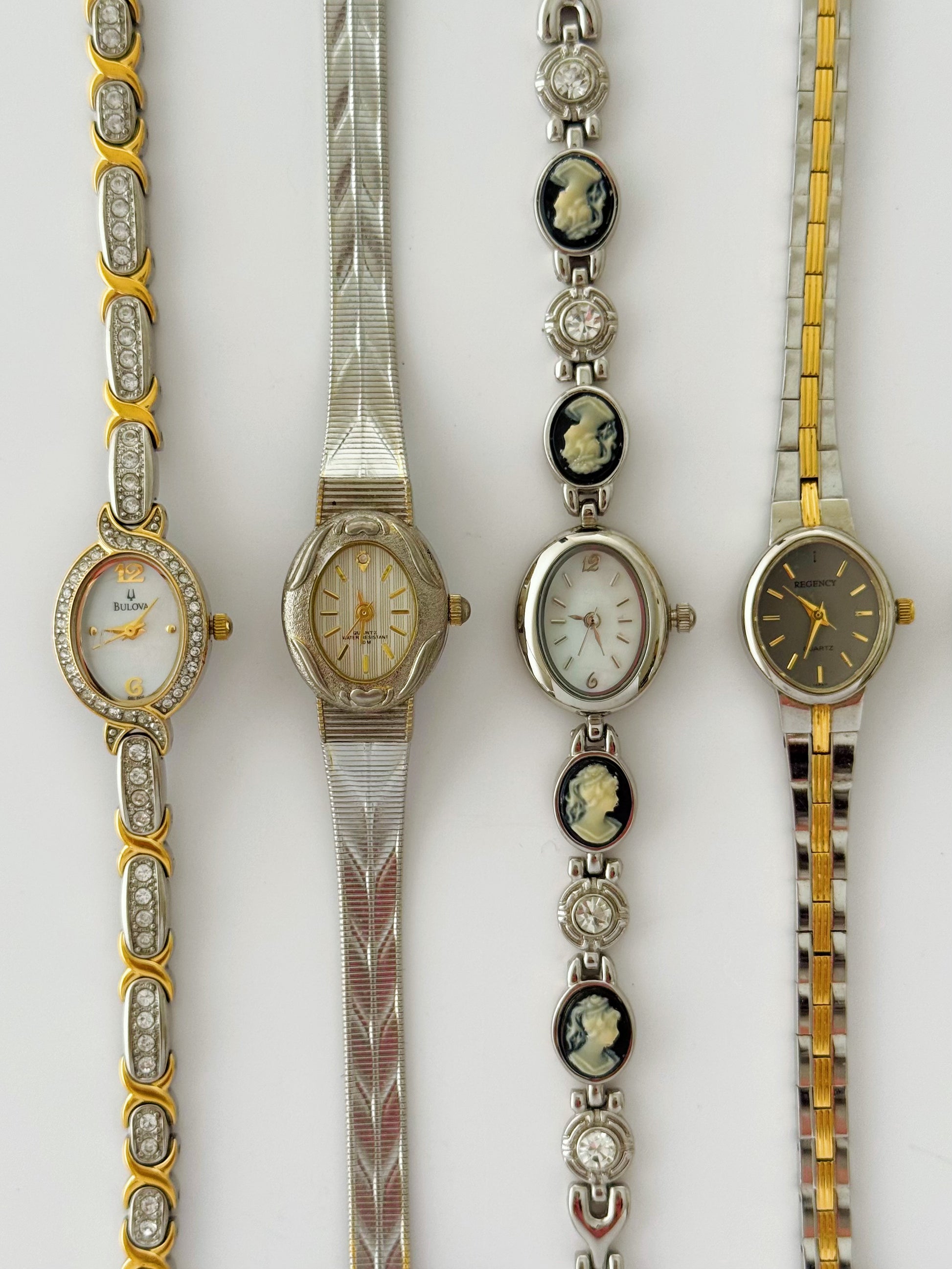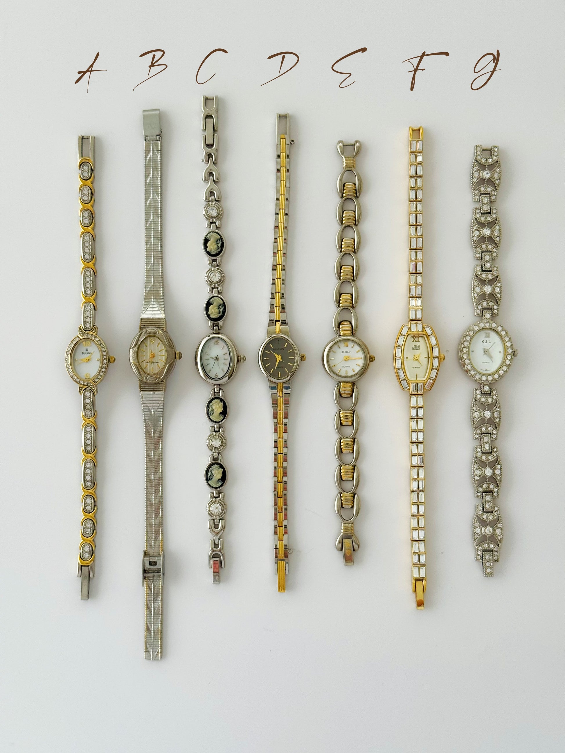 All watches are sold as is and all sales are Final. Due to the vintage nature of this product, refunds/exchange are not accepted. Please read our refund policy for more information and review all listing photos and description throughly before making a purchase. These watches are vintage and preowned so please expect wear and tear which include but not limited to scratches/gold fading throughout the watch. Watch pricing are determined based on their style and working/physical condition!